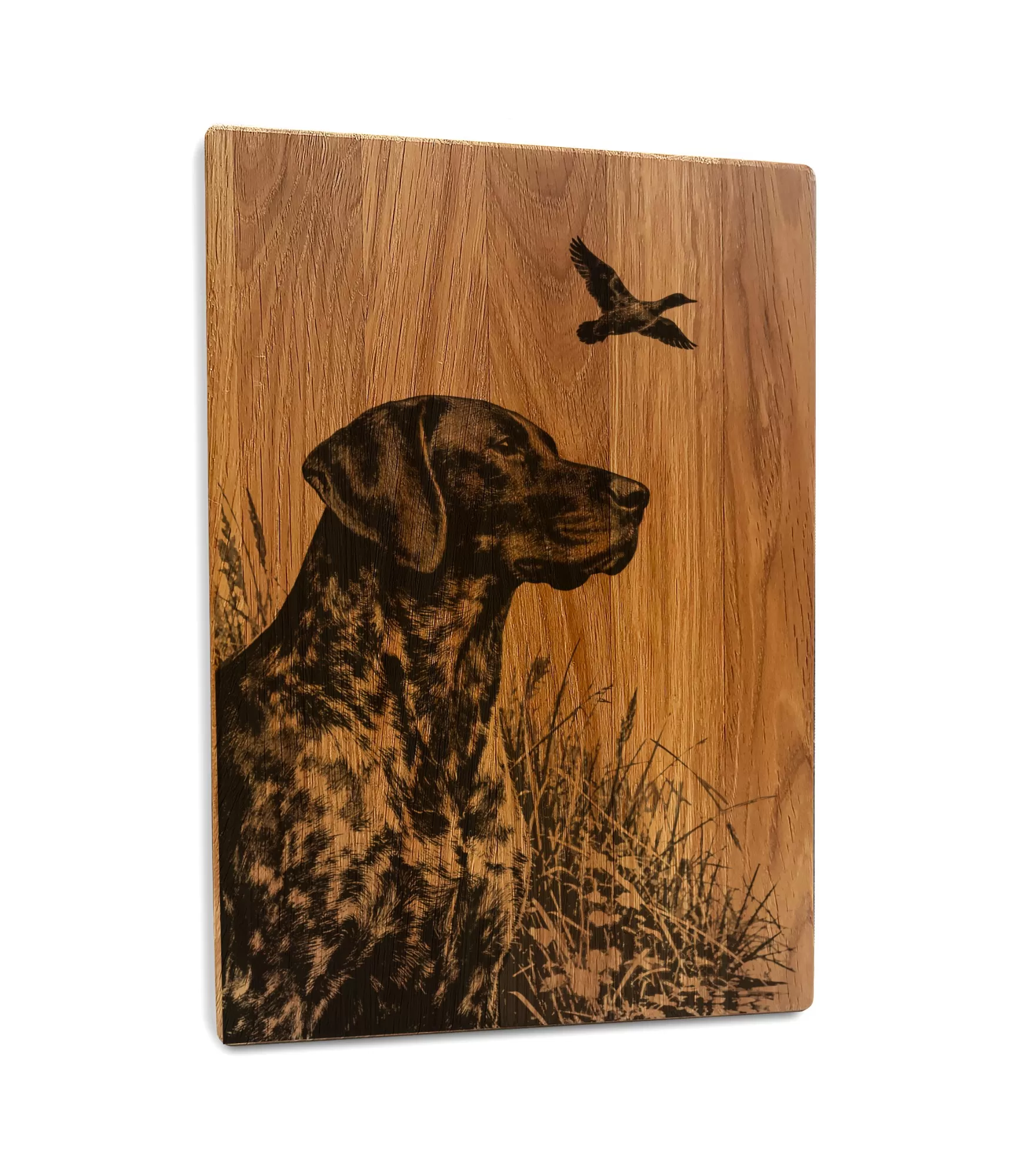 Originali pjaustymo lentelė "Šuo CB-2649" – tai gaminys, kuriame susitinka aukščiausia kokybė ir aistra gamtai. Išskirtinis medžioklinio šuns ir anties piešinys sukuria detalų, realistinį vaizdą, suteikiantį šiam gaminiui gilumo ir autentiškumo. Tai stilingas maisto ruošimo erdvės akcentas, atspindintis laisvę bei gamtos ramybę.