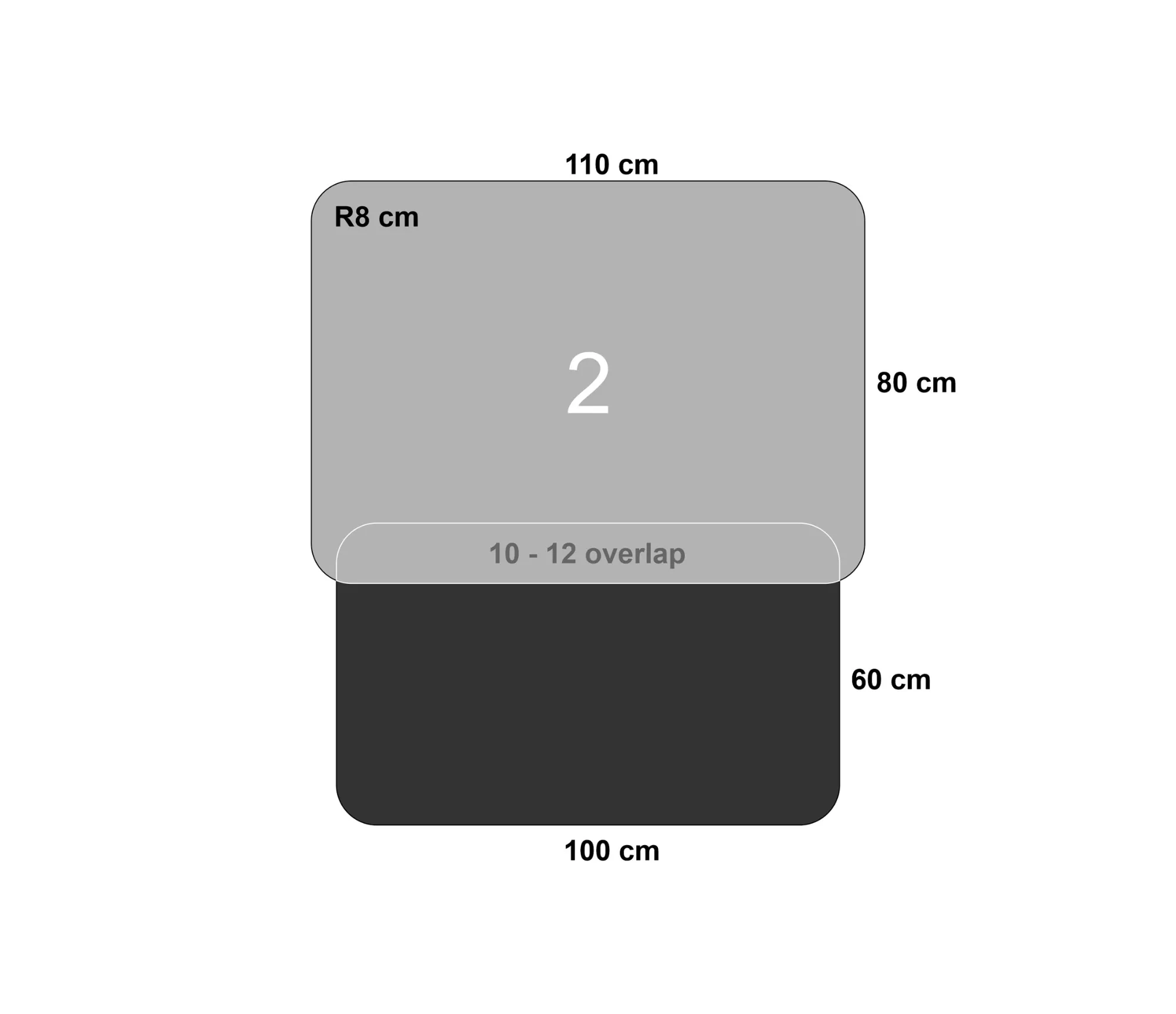 Šį apsauginių kilimėlių rinkinį sudaro dvi dalys, kurios yra sujungtos Velcro juosta.
