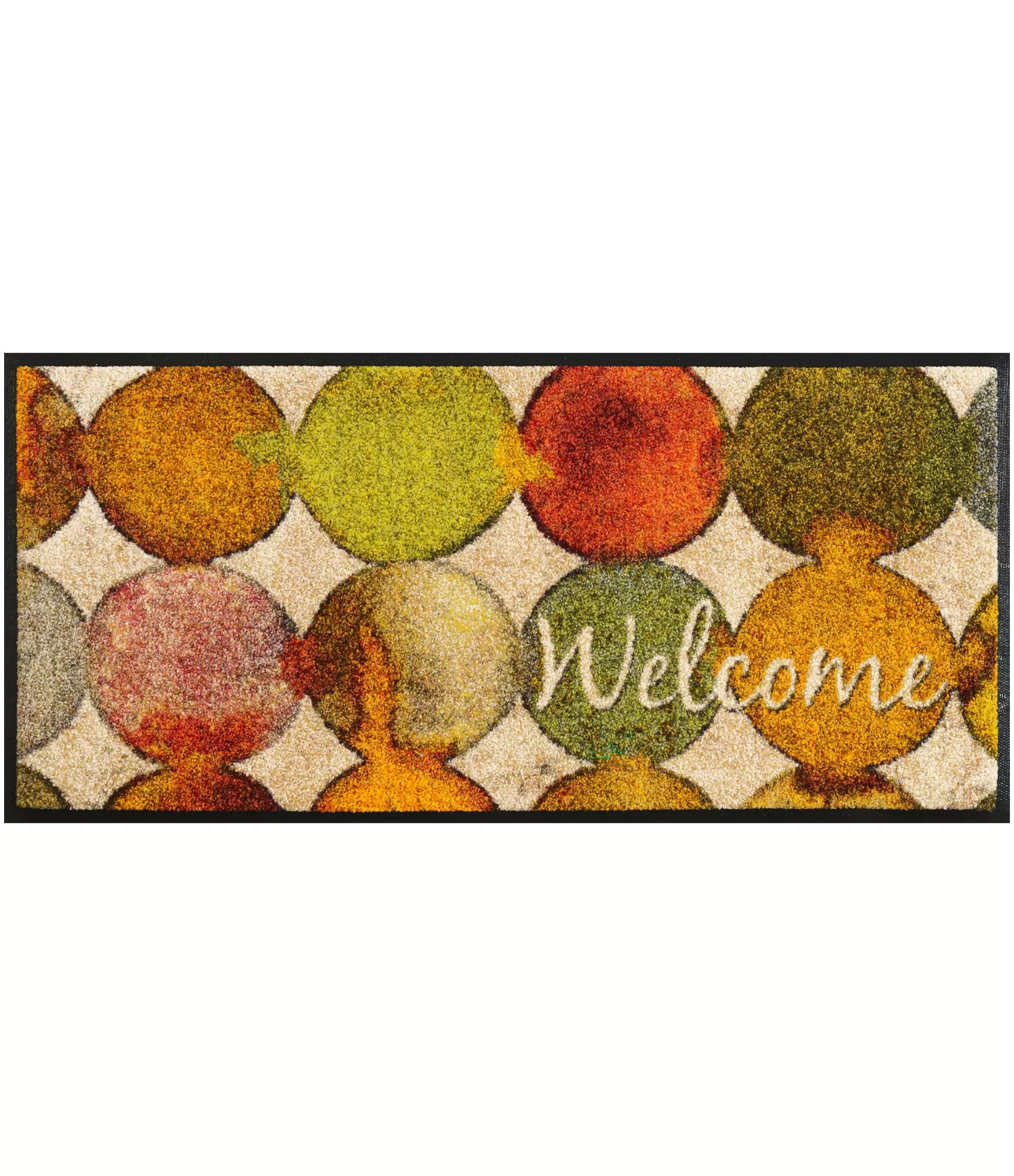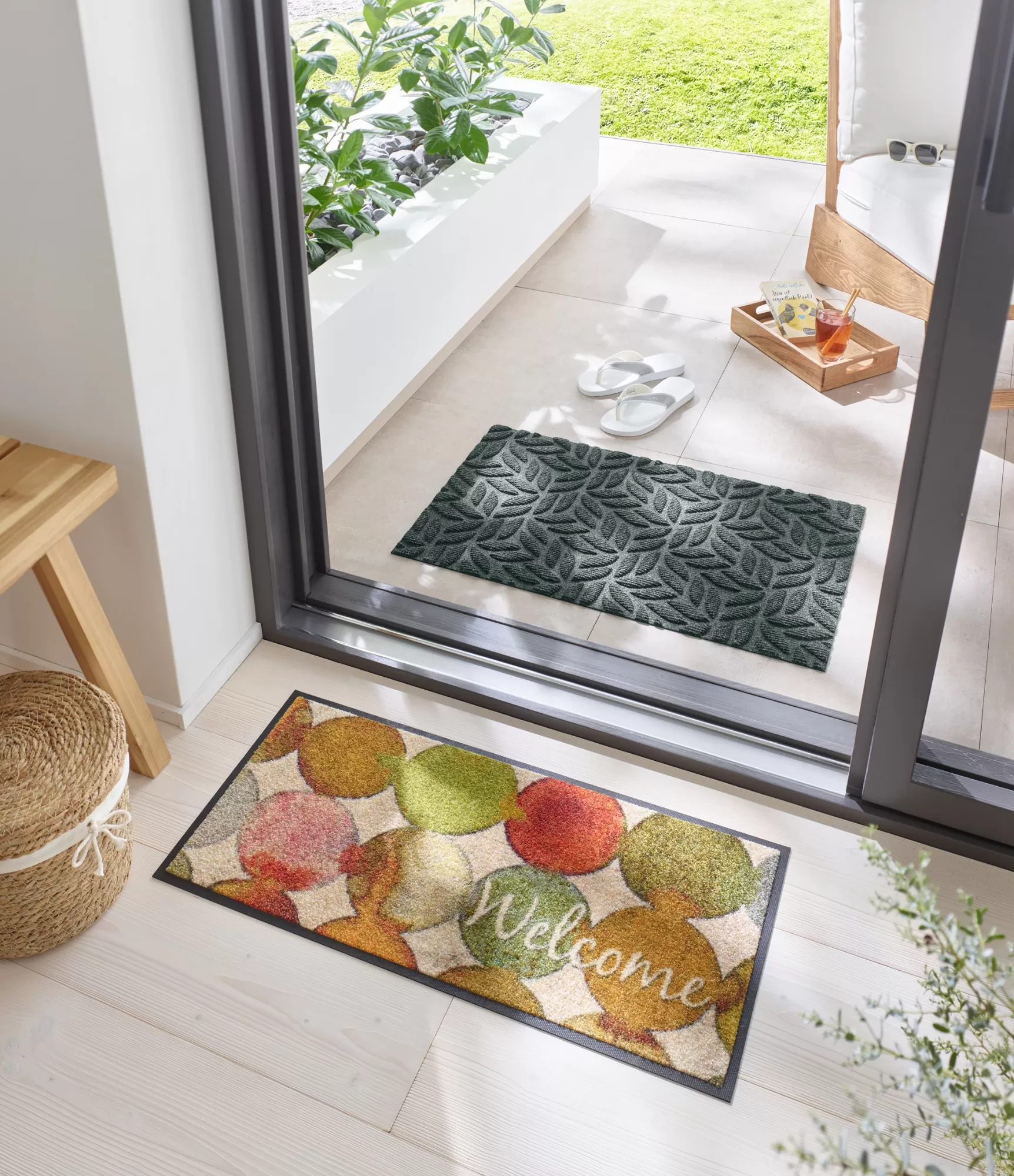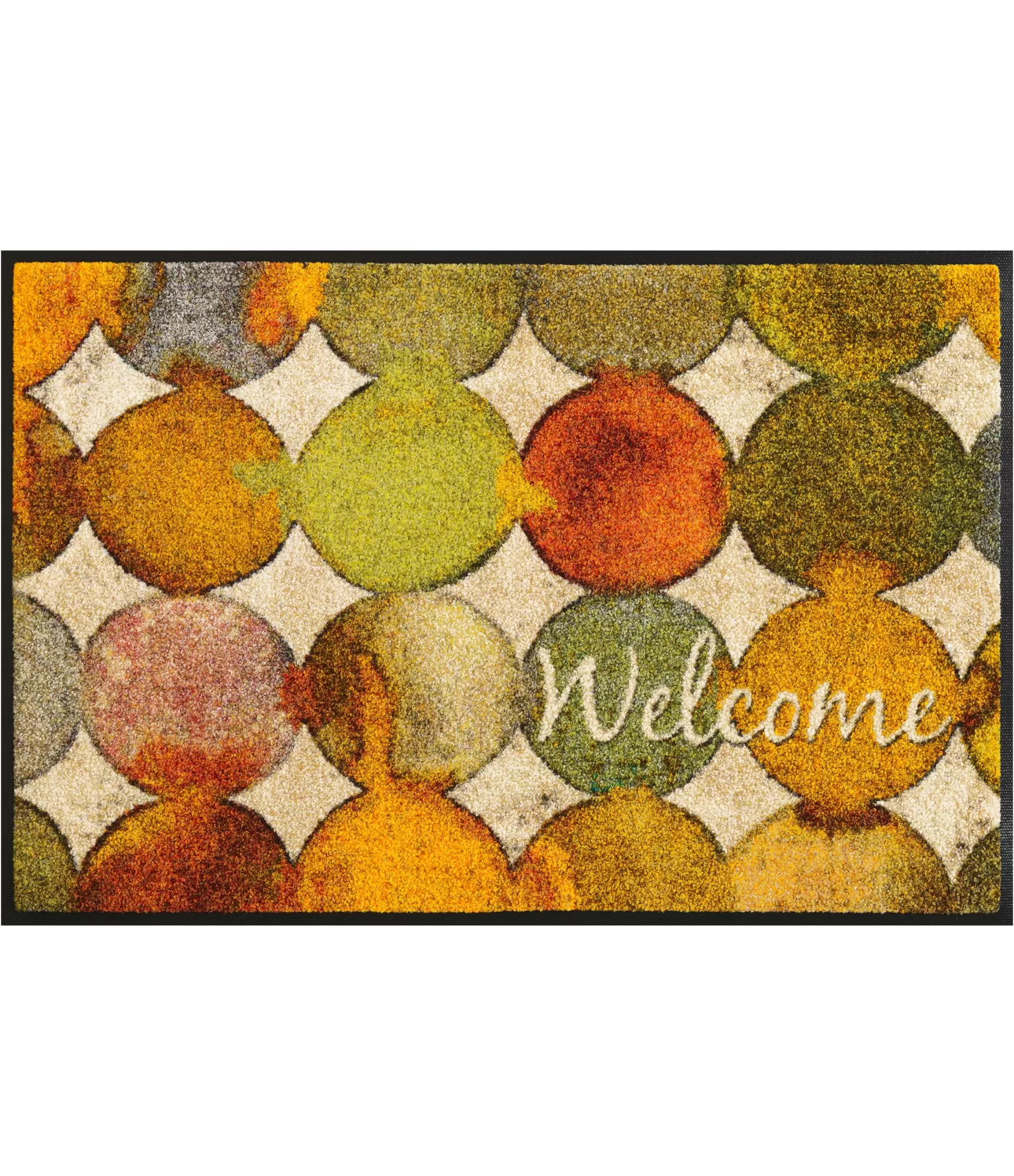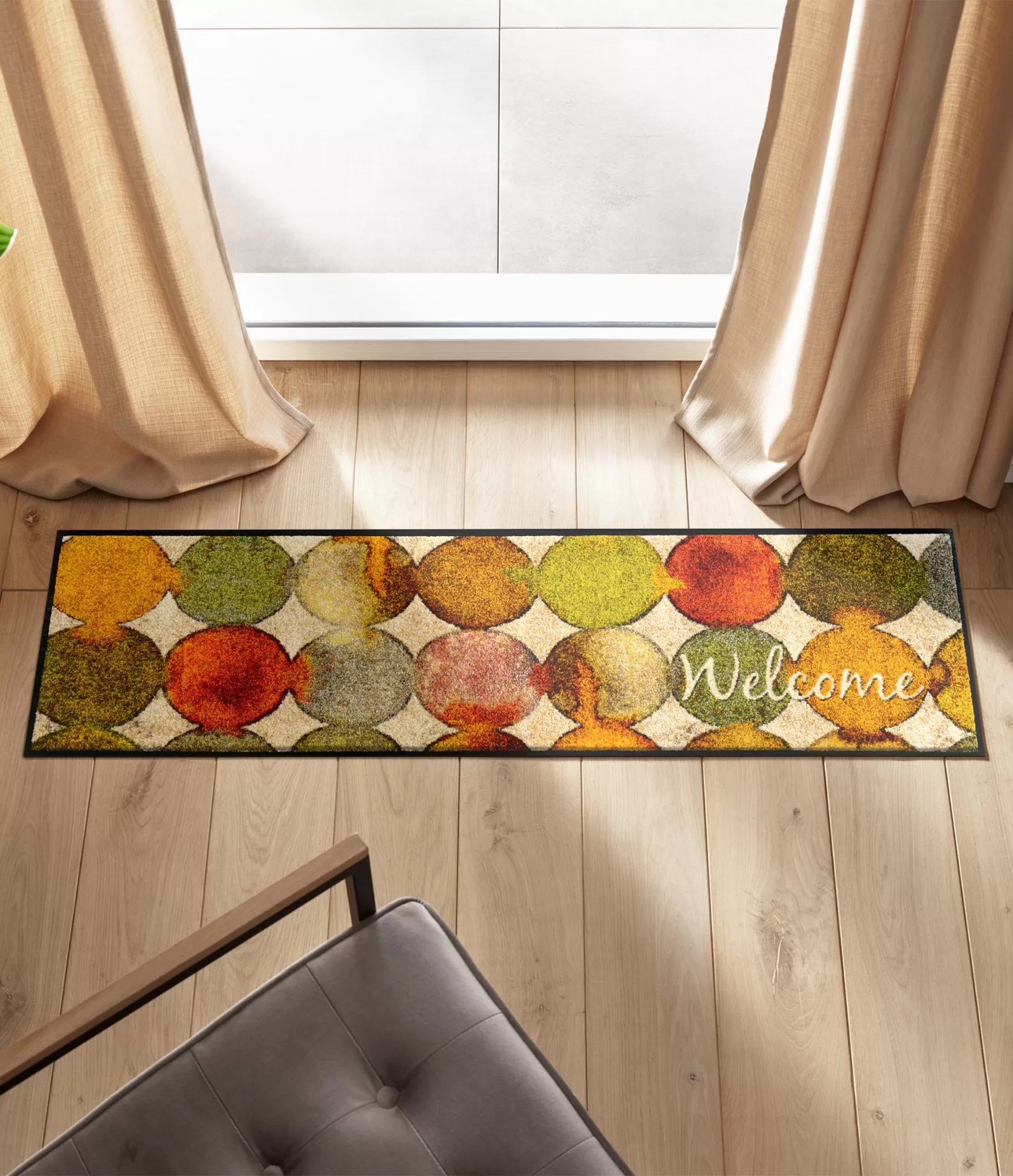 „Charming Path“ durų kilimėlis iš karto sukuria šiltą ir kviečiančią nuotaiką. Spalvingi, apvalūs raštai su rudens tonais – geltona, oranžine, žalsva ir rusva – suteikia gyvybingumo ir tampa išskirtiniu akcentu prie įėjimo. Papildomas „Welcome“ užrašas dar labiau sustiprina svetingumo jausmą, todėl šis durų kilimėlis ne tik praktiškas, bet ir dekoratyvus.