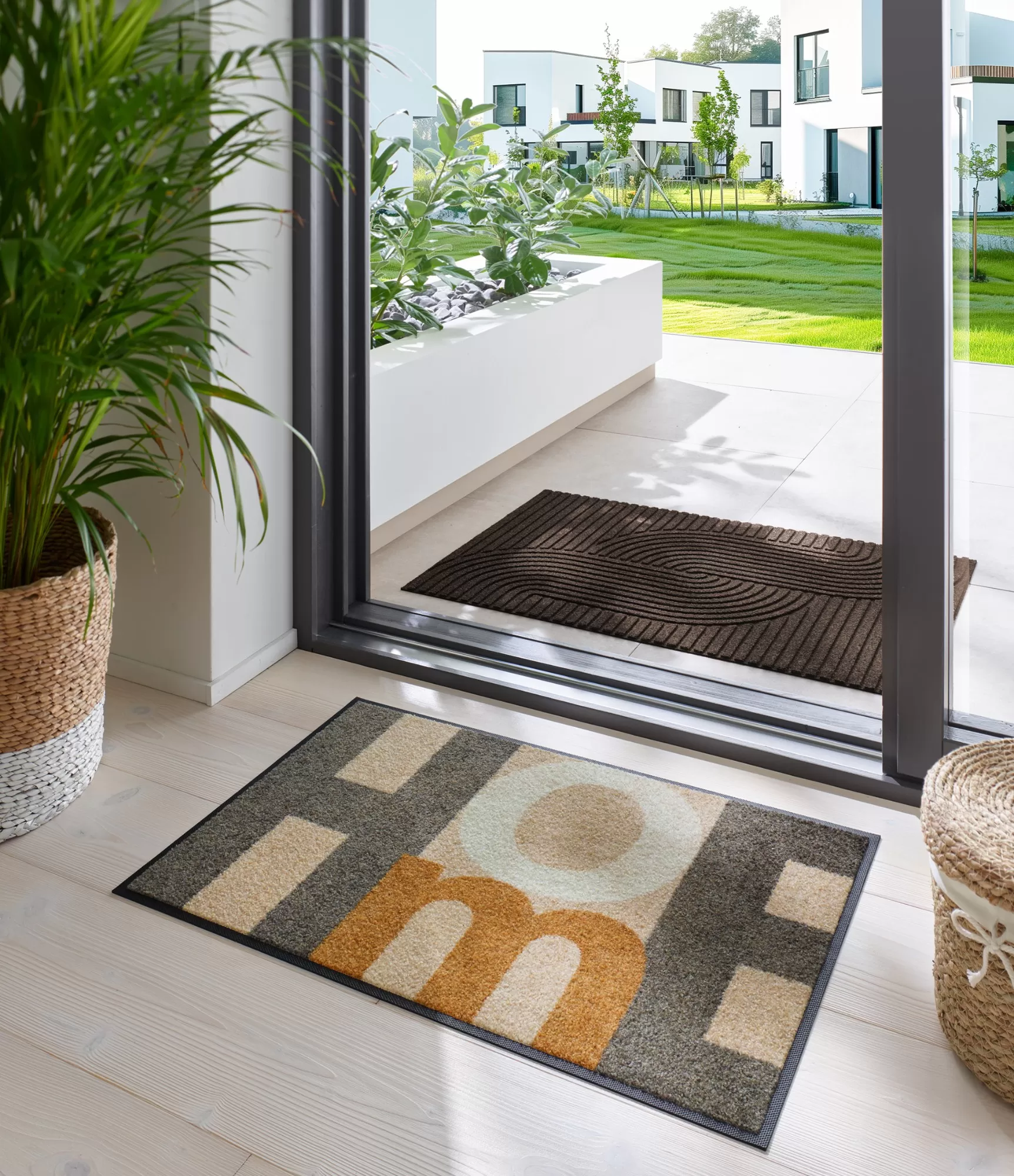 „Home Letters“ durų kilimėlis iš karto kuria jaukumo įspūdį dar prieš įžengiant į namus. Stilingas grafinis dizainas su didelėmis raidėmis tampa ne tik praktišku, bet ir dekoratyviu akcentu. Subtilūs smėlio, pilki ir šilti rudi tonai lengvai dera prie įvairių interjero sprendimų – nuo modernaus iki klasikinio.