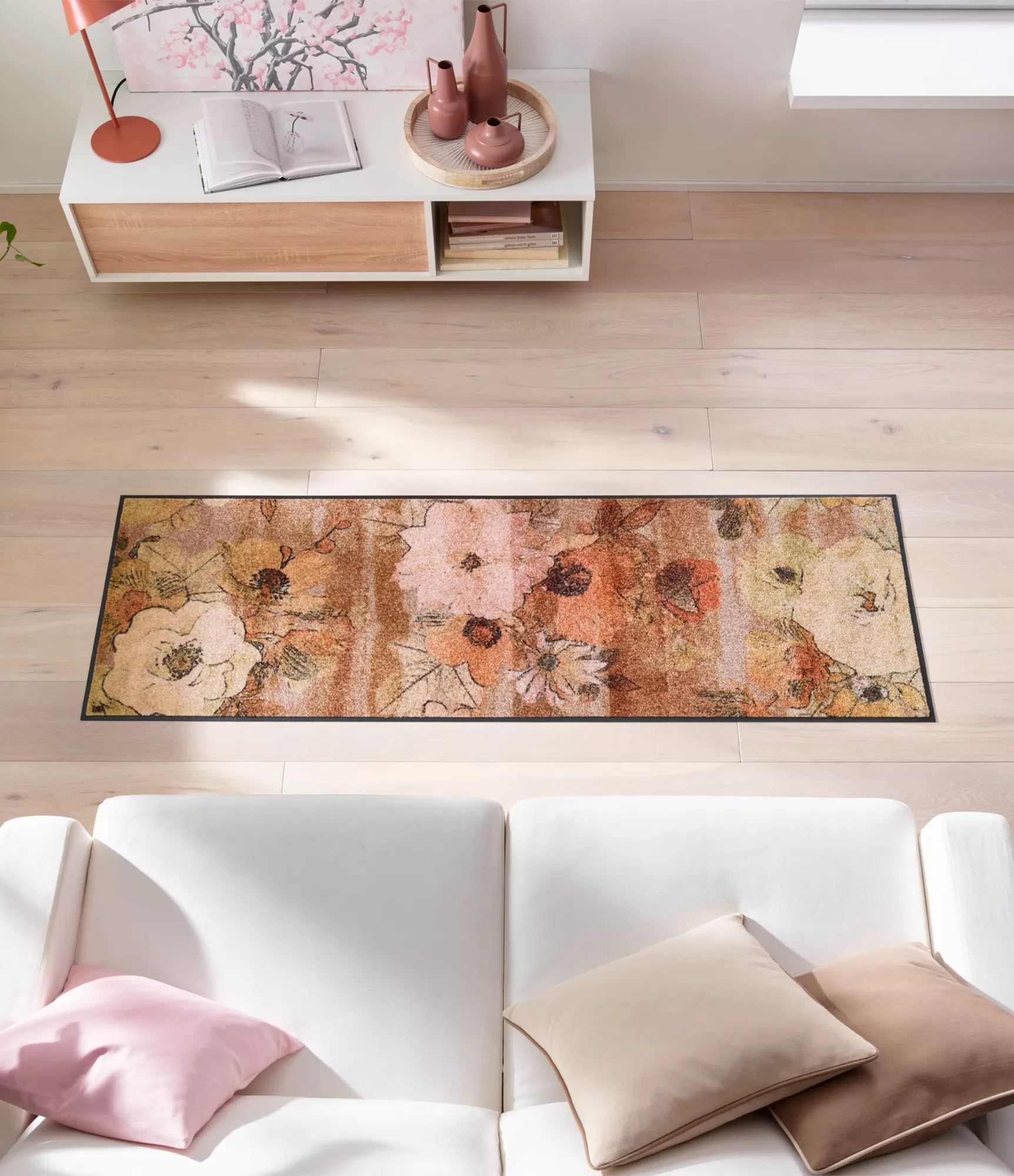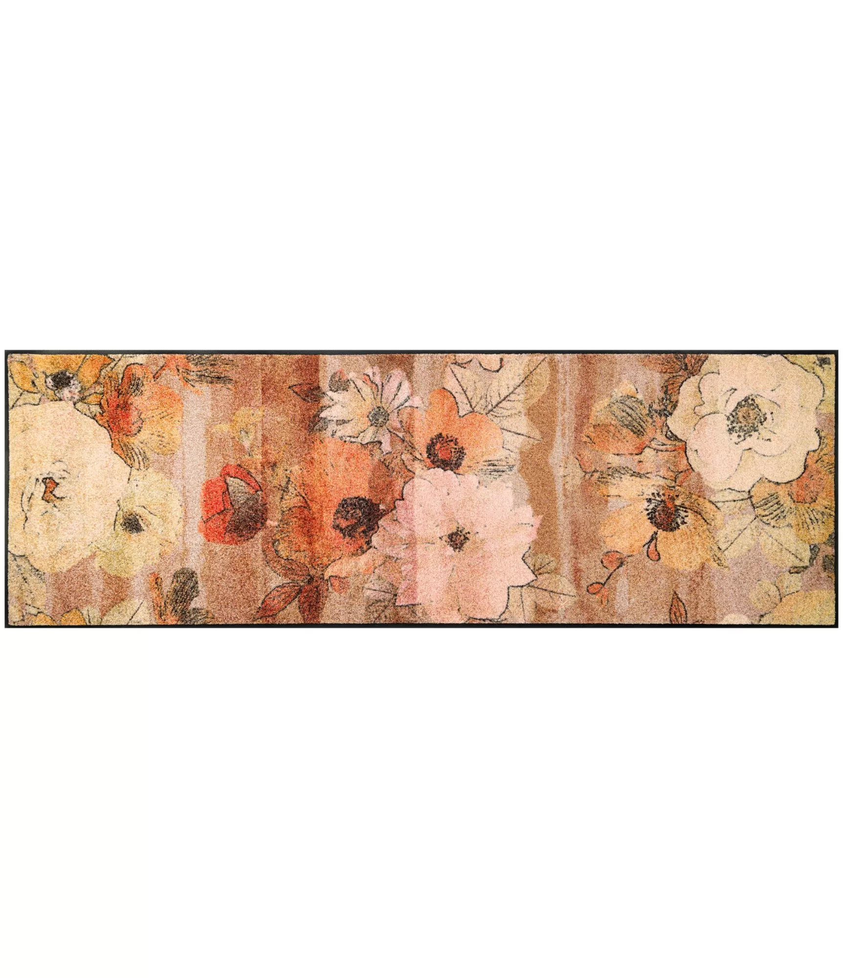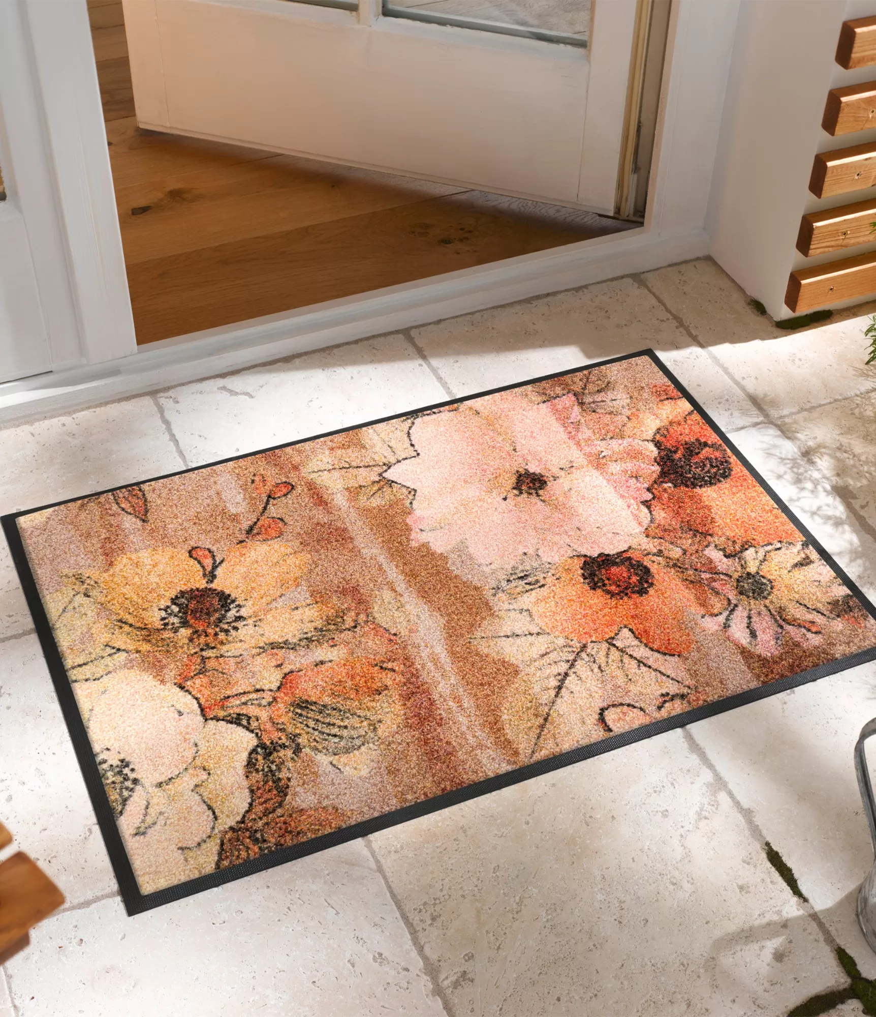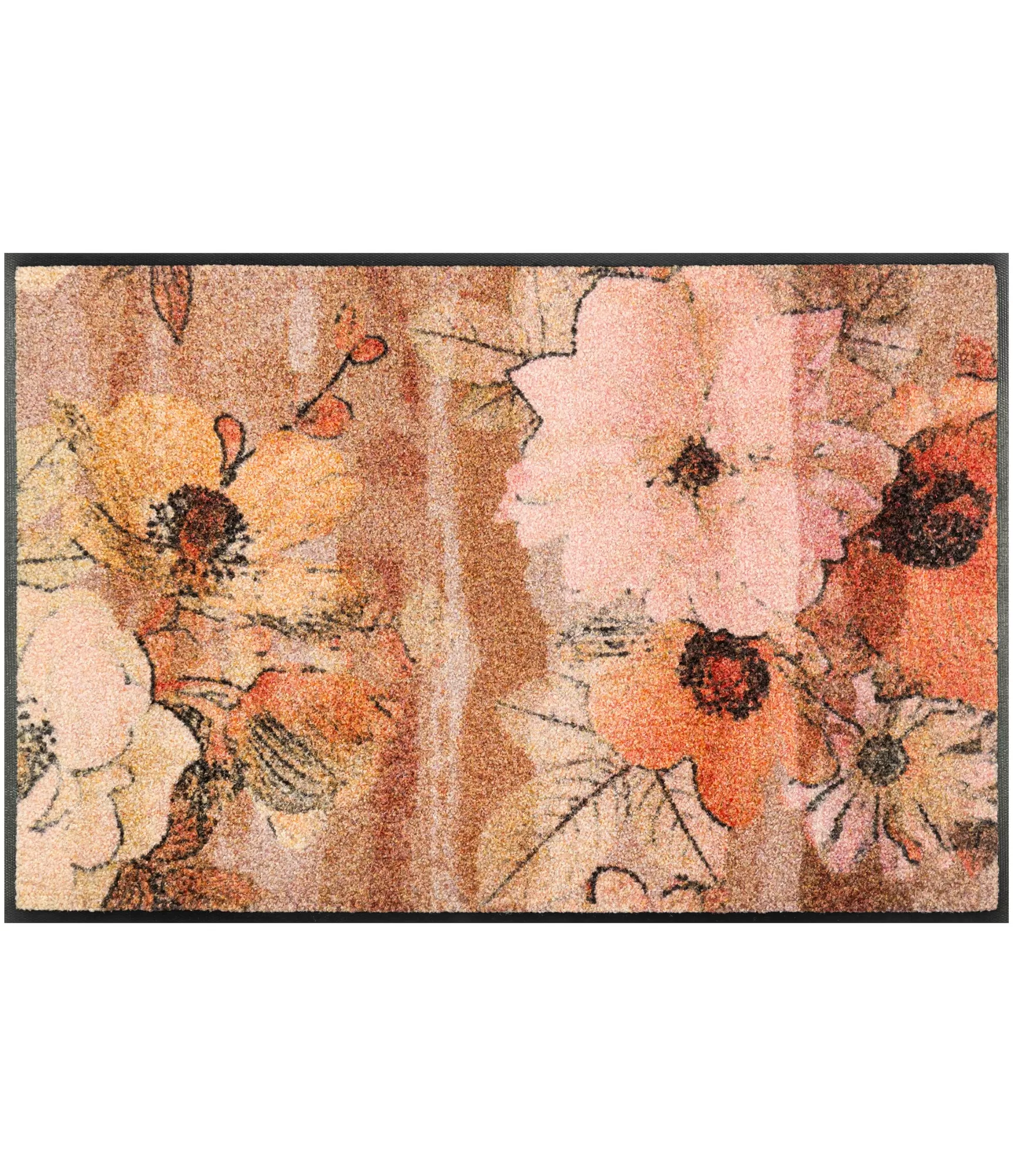 Durų kilimėlis "Retro Roses" išsiskiria subtiliu, retro stiliaus gėlių raštu, kuris suteikia erdvei šilumos ir jaukumo. Šis dizainas pasižymi švelniais, natūraliais tonais – čia dominuoja rusvi, smėlio, rožiniai ir prislopinti oranžiniai atspalviai, kurie sukuria harmoningą ir ramią atmosferą. Tokia spalvų paletė lengvai dera tiek prie klasikinio, tiek prie modernesnio interjero, todėl šis sprendimas tampa universaliu pasirinkimu.