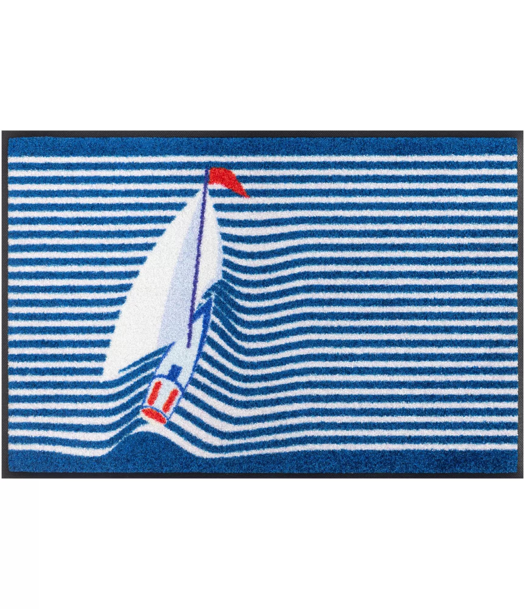 Durų kilimėlis Sailing Boat sukurtas galvojant apie kasdienį patogumą. Jo paviršius pagamintas iš 100 % poliamido – tai itin atspari ir tanki tekstilinė medžiaga, kuri efektyviai sugeria drėgmę bei sulaiko purvą. Tai reiškia, kad mažiau nešvarumų patenka į namus, o grindys išlieka švaresnės.