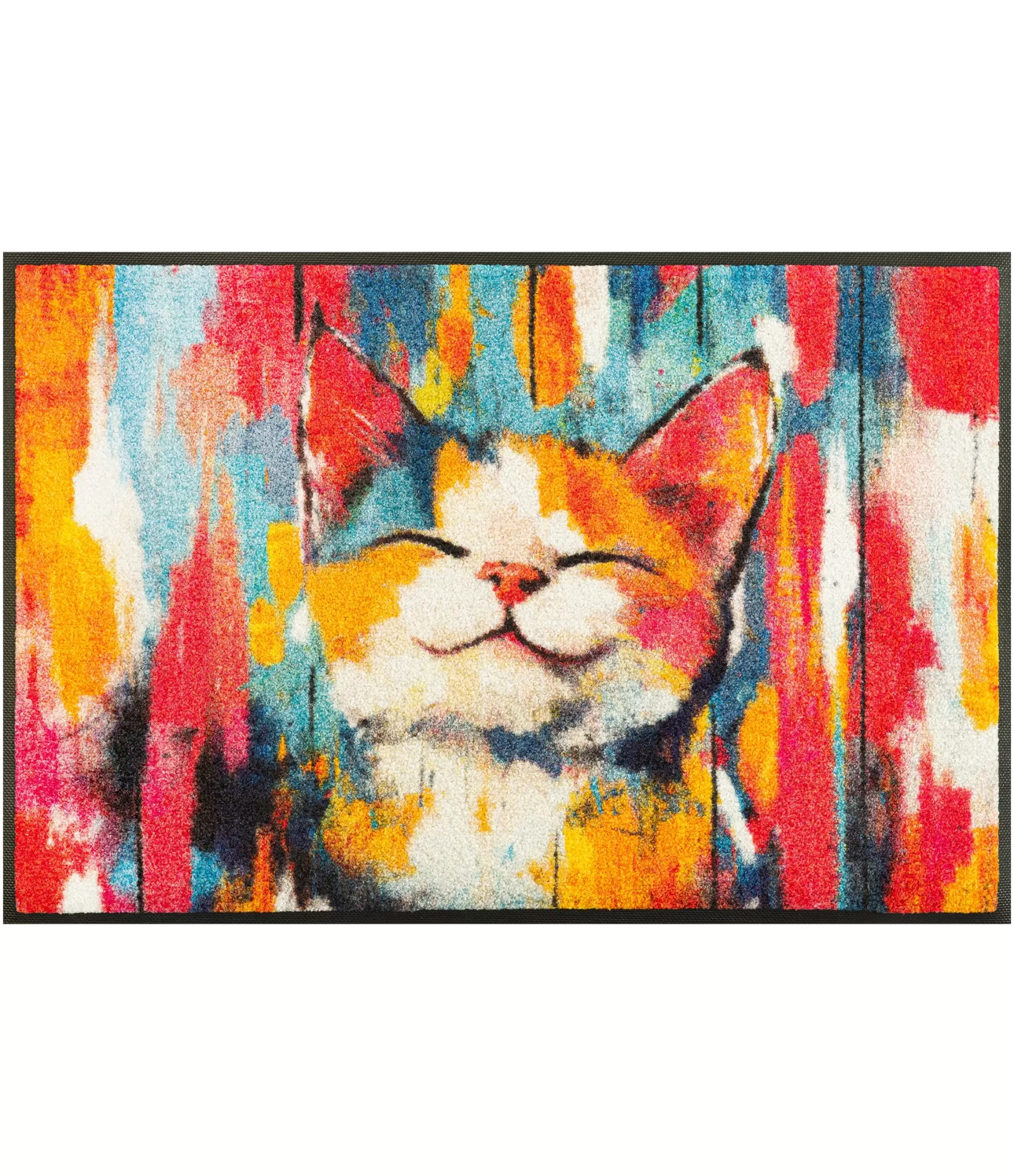 Durų kilimėlis „Tallulah“ išsiskiria ryškiu, meniniu dizainu, kuris iš karto patraukia dėmesį ir suteikia įėjimui gyvybės. Spalvų derinys ir žaismingas katės motyvas kuria pozityvią nuotaiką, todėl šis durų kilimėlis tampa ne tik praktišku, bet ir išskirtiniu interjero akcentu. Jis puikiai tinka tiek namų viduje, tiek prie įėjimo ar terasoje, kur norisi daugiau spalvų ir charakterio.