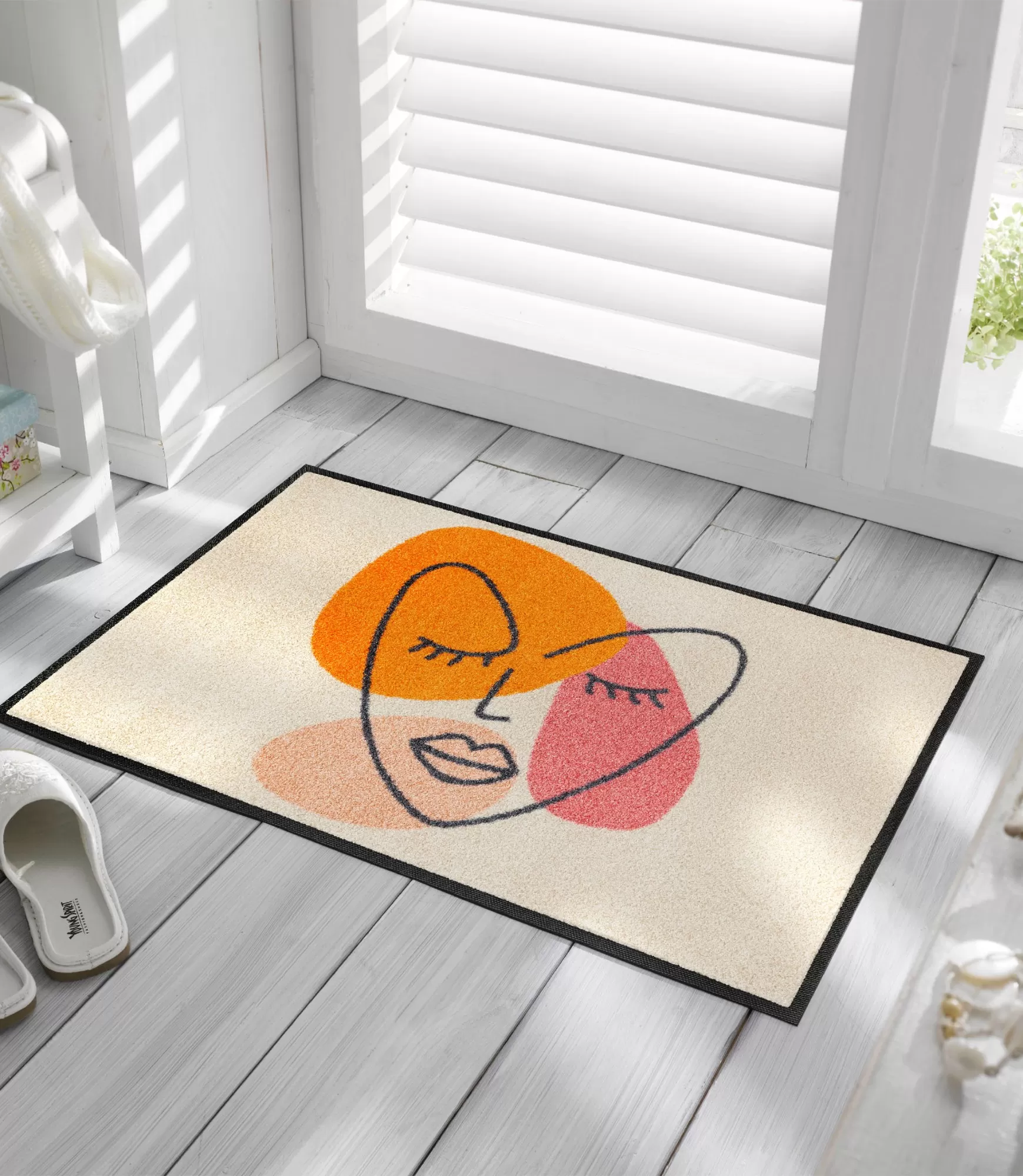 Durų kilimėlis „Amourette“ – tai daugiau nei praktiškas sprendimas prie įėjimo. Tai subtilus, estetiškas akcentas, kuris primena meno kūrinį ir įneša į namų erdvę lengvos elegancijos bei mados pojūtį. Linijomis perteiktas veidas, užmerktos akys ir švelnios formos kuria ramų, harmoningą įspūdį, kuris iš karto traukia žvilgsnį.