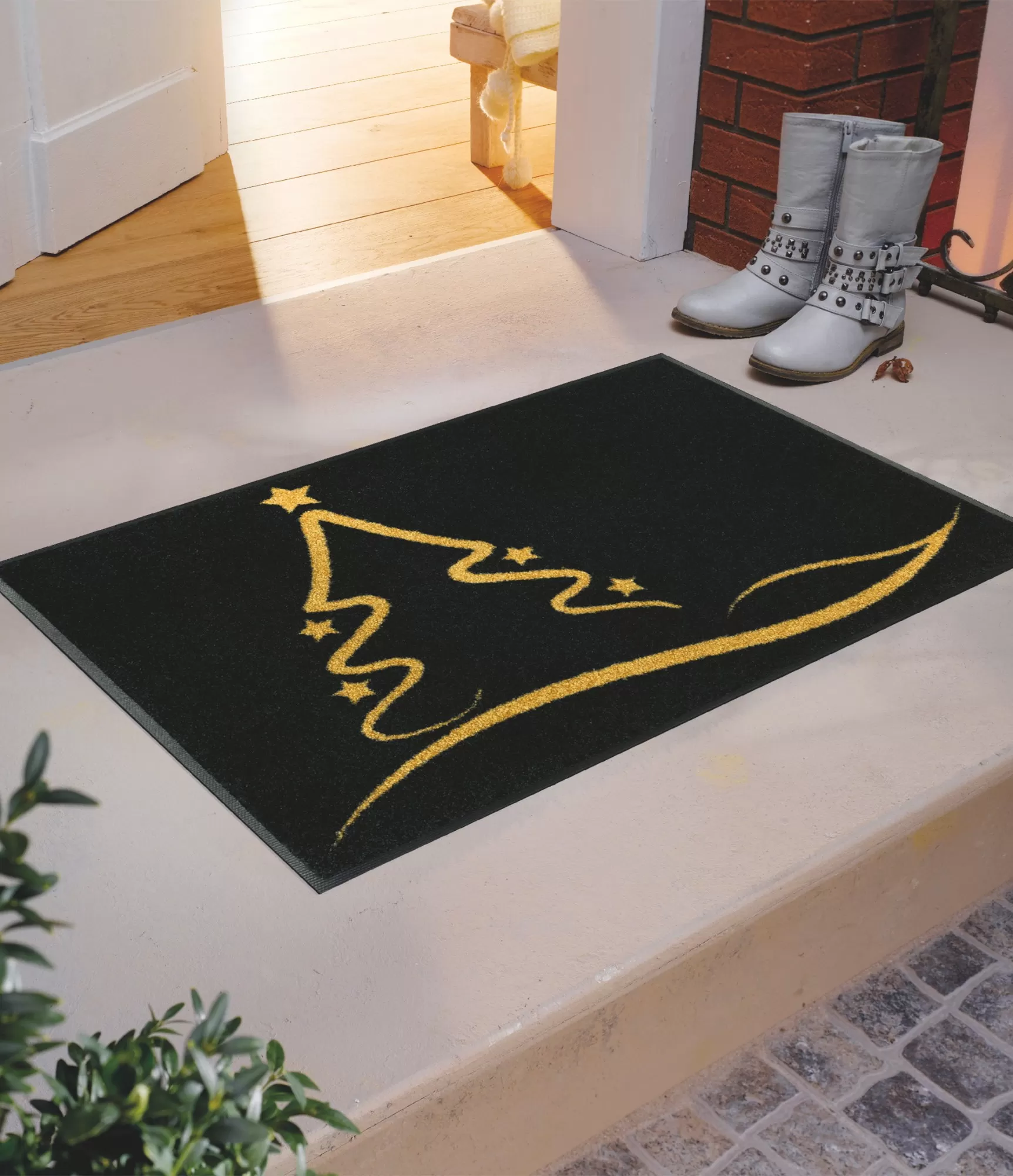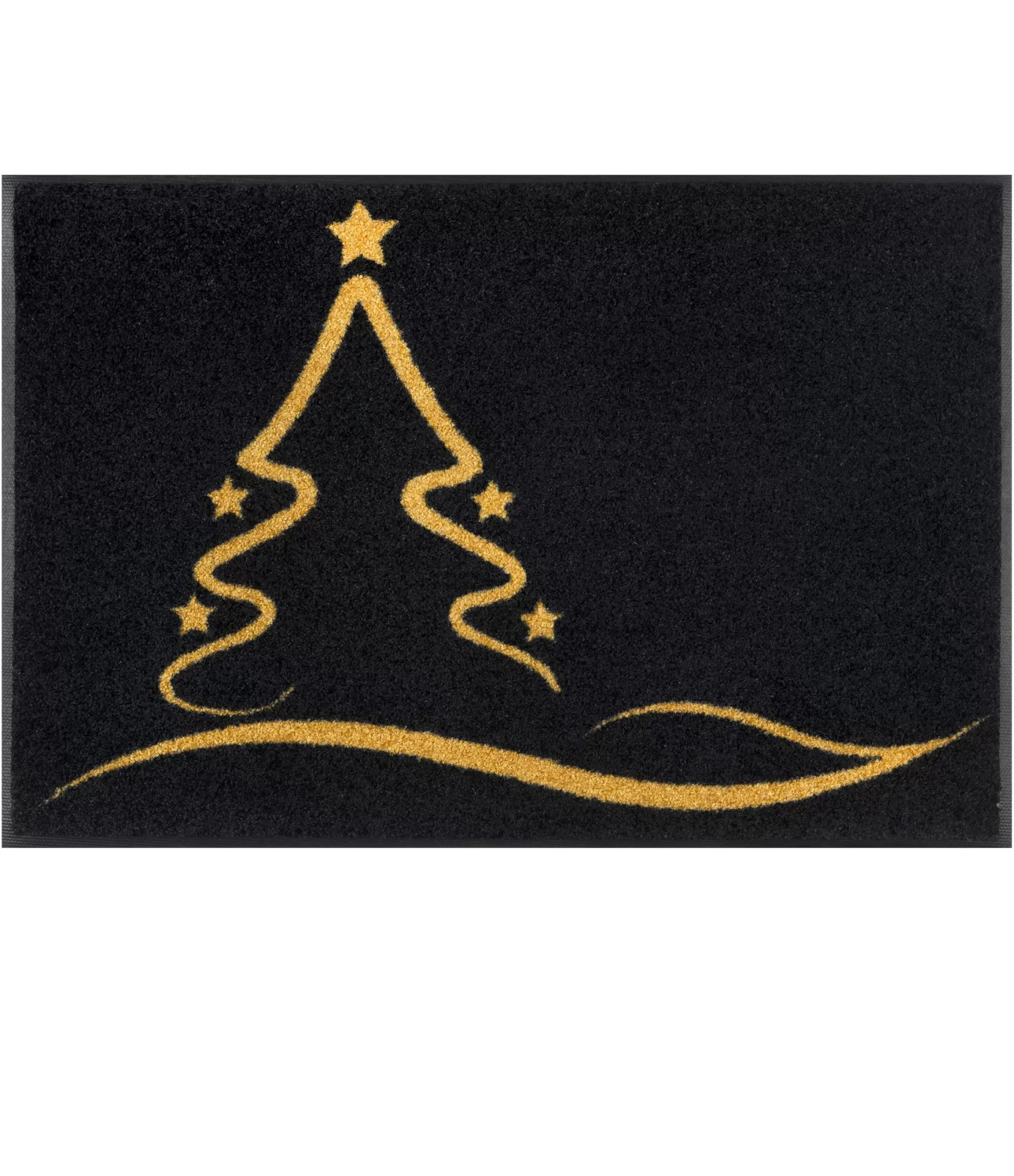Durų kilimėlis Golden Shine išsiskiria minimalistiniu, bet kartu labai išraiškingu dizainu. Juodame fone išryškėjanti auksinė eglutė su švelniomis linijomis ir žvaigždžių akcentais kuria elegantišką, švarų vaizdą, kuris lengvai įsilieja į skirtingus interjerus. Tai sprendimas tiems, kurie vertina neperkrautą estetiką, tačiau nori į namus įnešti subtilios žiemos nuotaikos.