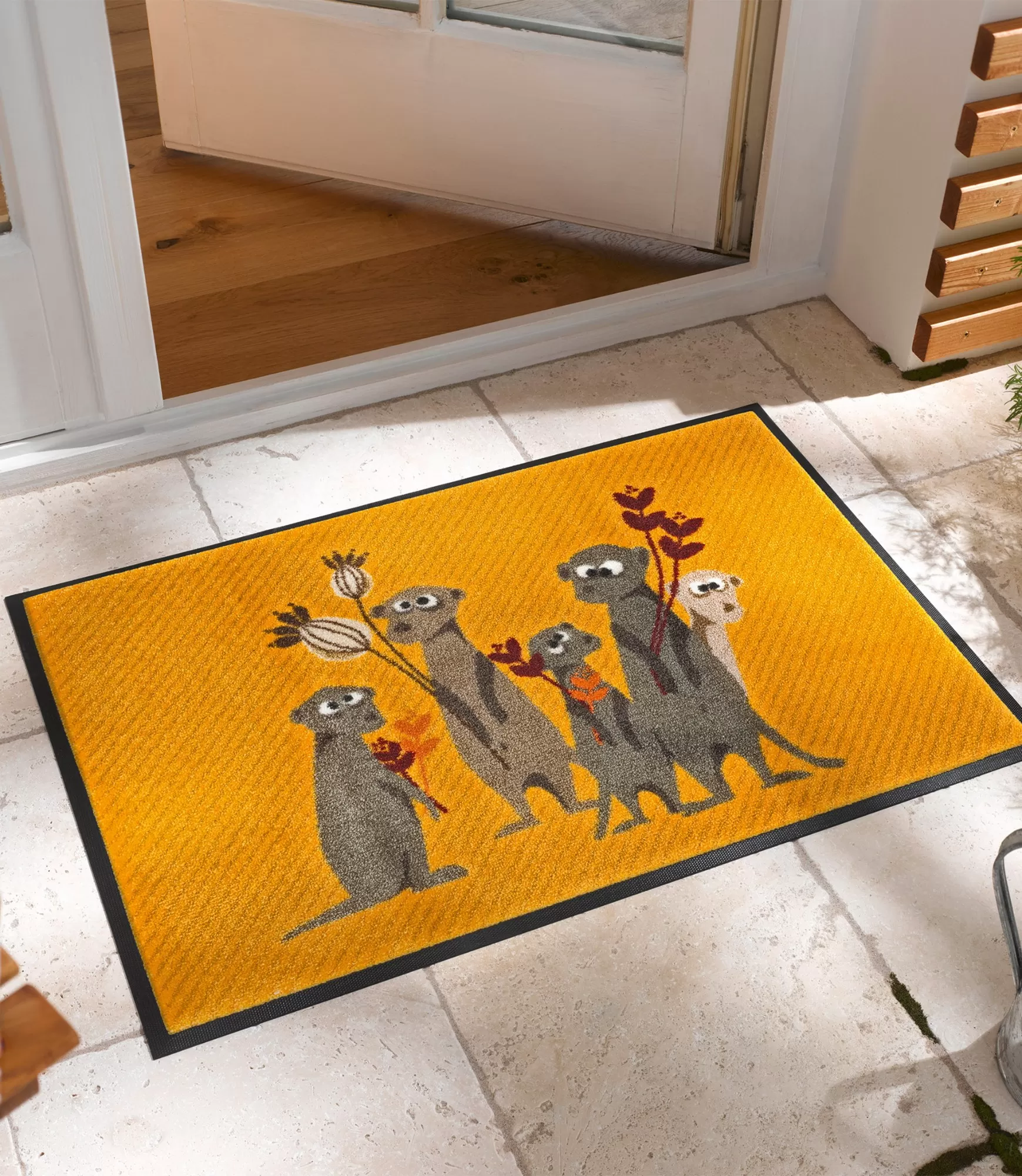 Durų kilimėlis Pepe & Co. iš karto patraukia dėmesį savo linksmu ir šiltu dizainu. Ryškus geltonas fonas suteikia energijos ir pozityvumo, o simpatiški gyvūnėlių motyvai kuria jaukią, draugišką nuotaiką vos įžengus į namus. Tokia spalvų kombinacija puikiai tinka tiek moderniam, tiek žaismingesniam interjerui, o pats gaminys tampa ne tik praktišku sprendimu, bet ir išskirtiniu stiliaus akcentu prie durų.