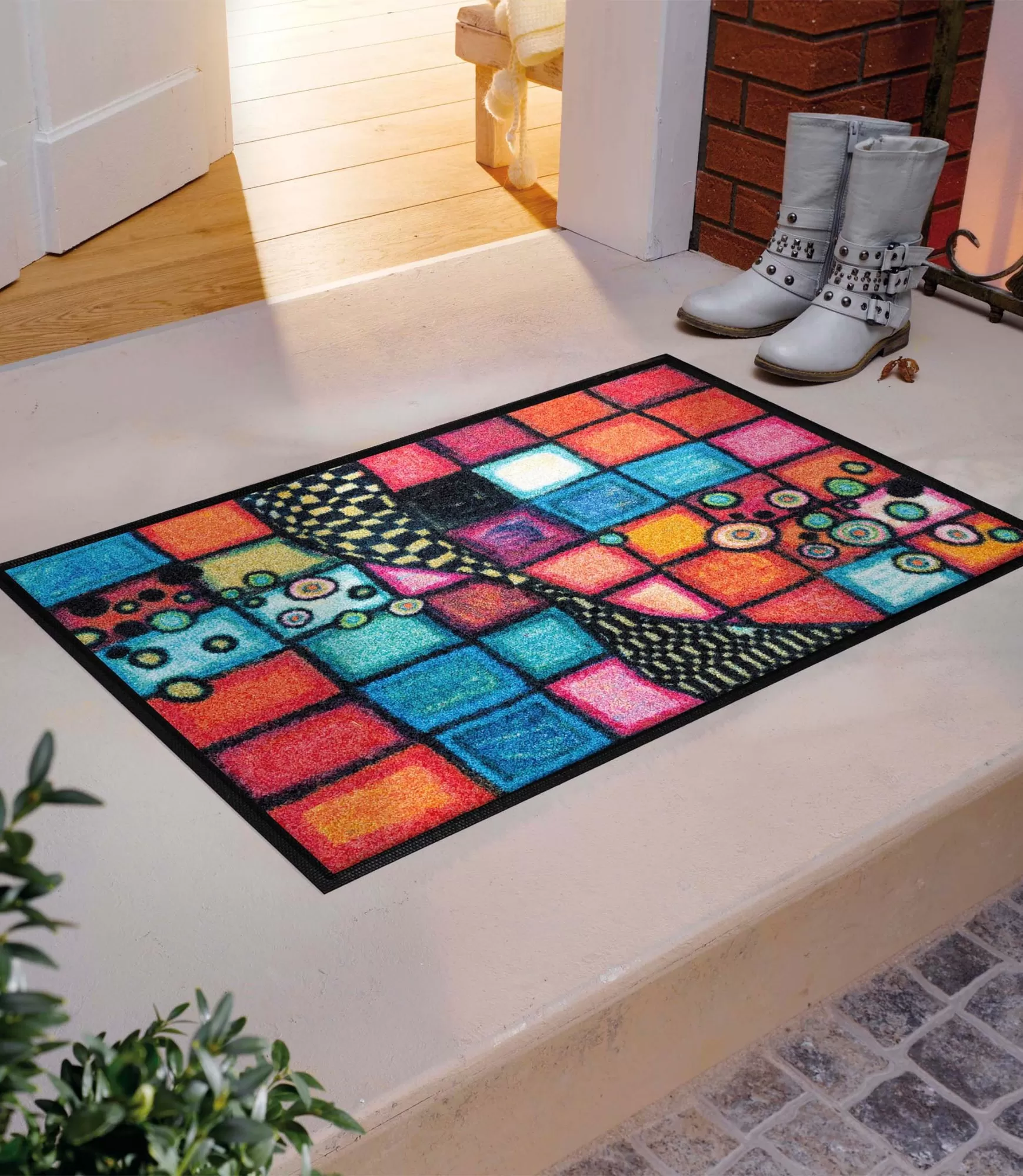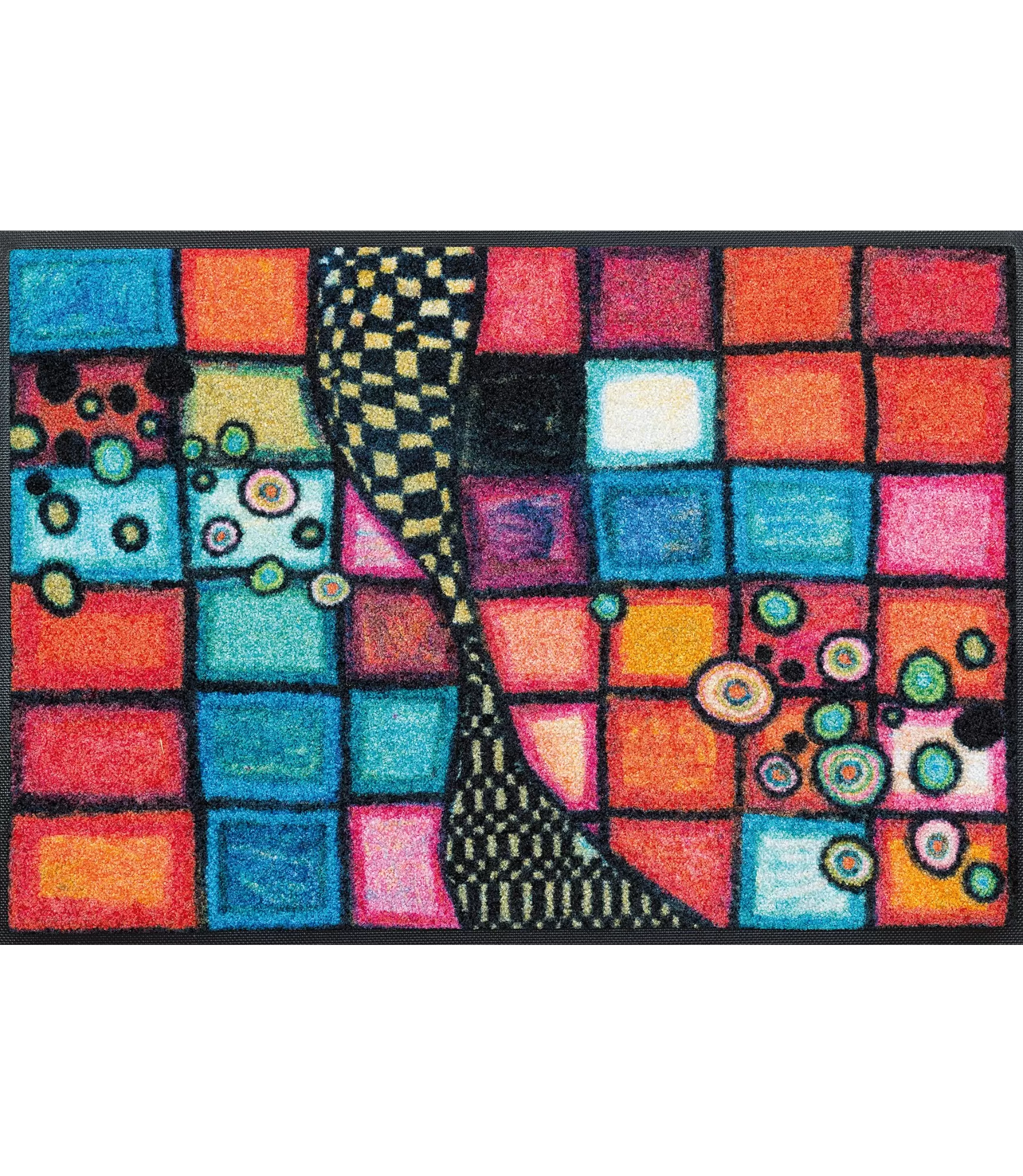 Durų kilimėlis Tiger Tundra išsiskiria drąsiu, meniniu dizainu, kuris primena abstraktų paveikslą. Ryškūs spalvų blokai, kontrastingos linijos ir netikėti ornamentai sukuria dinamišką, akį traukiantį vaizdą ir tampa išskirtiniu interjero akcentu, kuris suteikia erdvei charakterio ir gyvybingumo. Spalvų įvairovė leidžia lengvai priderinti jį prie skirtingų stilių, o bendras dizainas kuria kūrybišką, energingą nuotaiką kiekvieną kartą įžengus į namus.