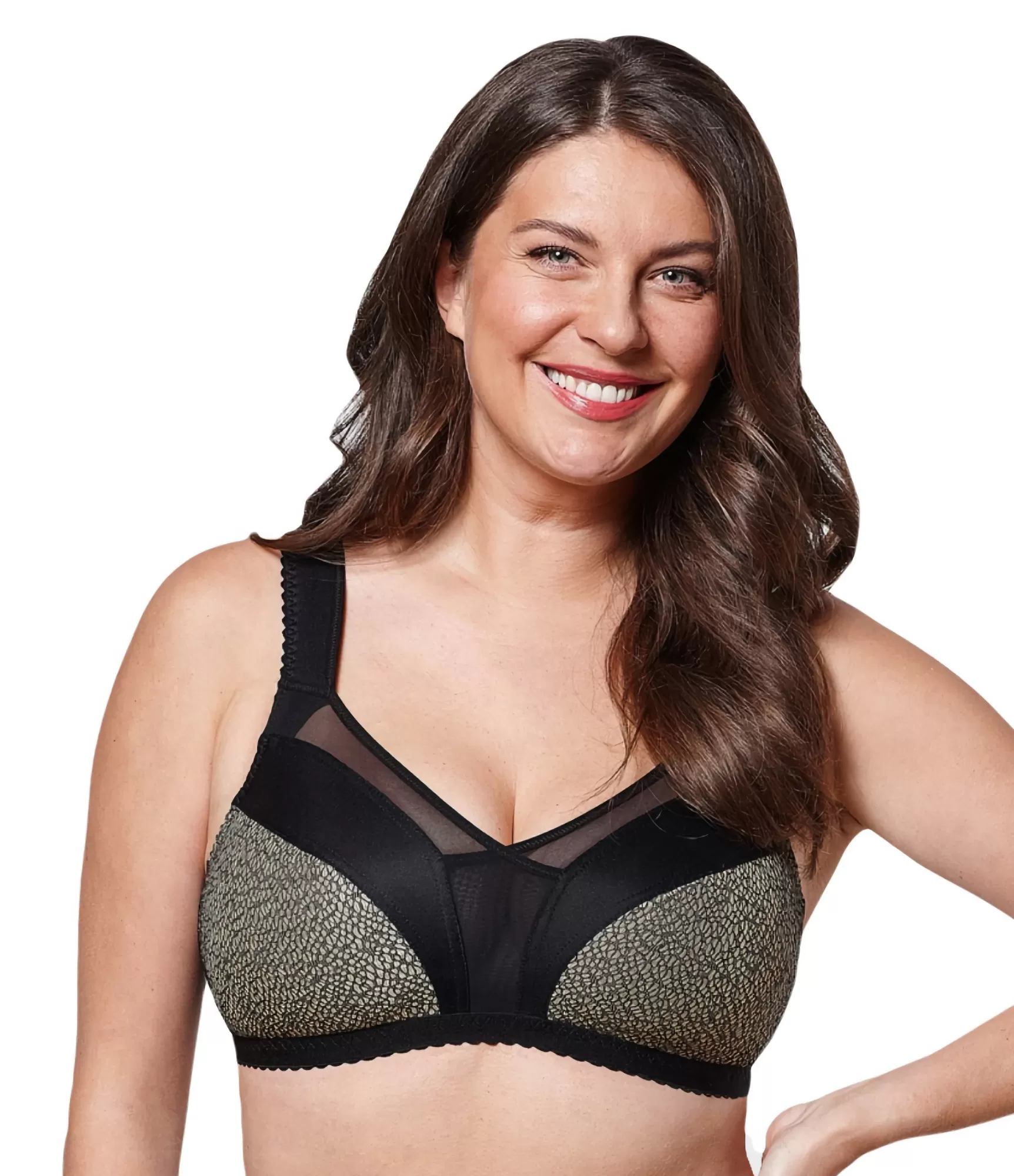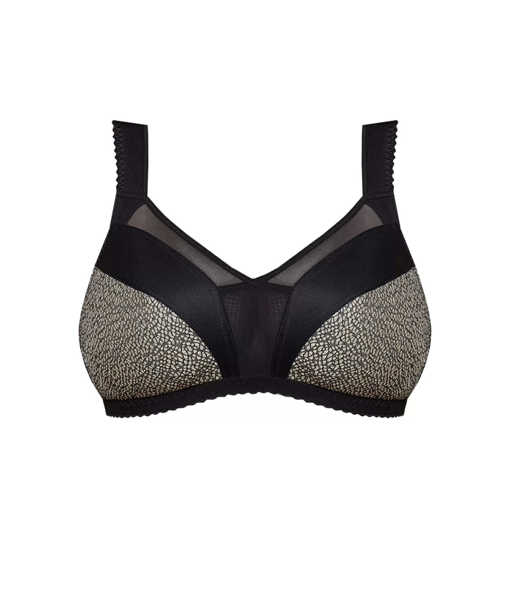 Tai idealus pasirinkimas moterims, kurios nori vizualiai sumažinti krūtinę ir išlaikyti ovalią jos formą. Liemenėlė yra konstruktyvi, be lankelių. Liemenėlės iškirptės konstrukcija yra uždaresnė, pagaminta iš švelniai permatomo tinklelio, liemenėlės šonai yra sutvirtinti specialiomis konstrukcinėmis detalėmis, todėl ji puikiai tinka ir didesnei krūtinei. Liemenėlės kaušeliai pasiūti iš subtiliai žvilgančio raštuoto audinio. Liemenėlės petnešėlės yra plačios, paminkštintos, jų ilgis reguliuojamas, todėl jos tikrai patogios, neįsirėžia ir nespaudžia.
