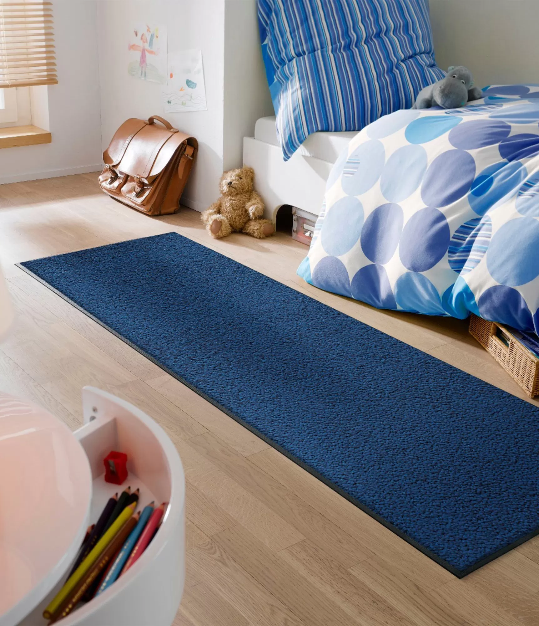 Kilimai, kiliminiai takai ir durų kilimėlis „Navy“ pasižymi sodria, gilia tamsiai mėlyna spalva, kuri suteikia interjerui elegancijos ir subtilaus išskirtinumo. Šis atspalvis yra praktiškas kasdieniam naudojimui – jis mažiau išryškina nešvarumus, todėl visada atrodo tvarkingai. Klasikinė spalva lengvai derinama prie įvairių grindų, baldų ar sienų tonų, todėl puikiai tinka tiek moderniuose, tiek tradiciniuose namuose.