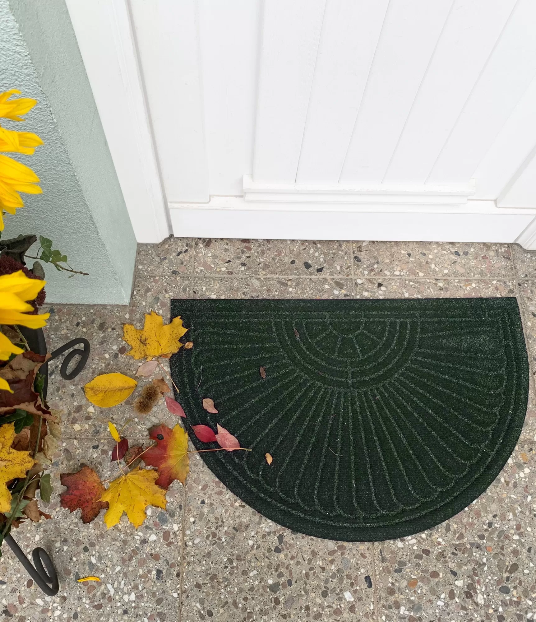 Ieškote patogaus ir stilingo sprendimo prie įėjimo durų? Tamsiai žalios spalvos pusmėnulio formos lauko kilimėlis yra puikus pasirinkimas tiems, kurie vertina kokybę, estetiką ir patogumą viename gaminyje.