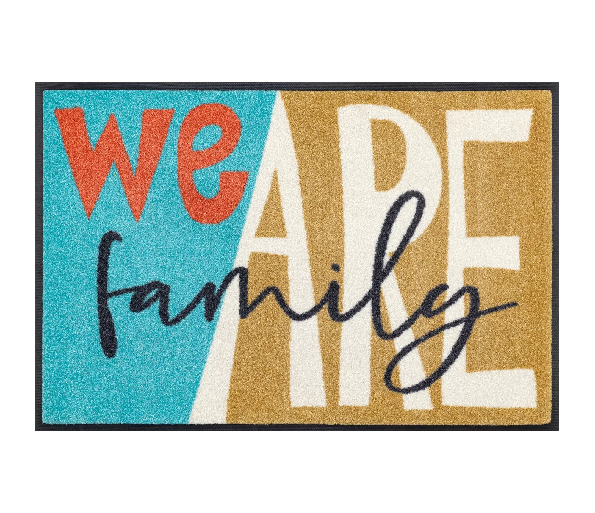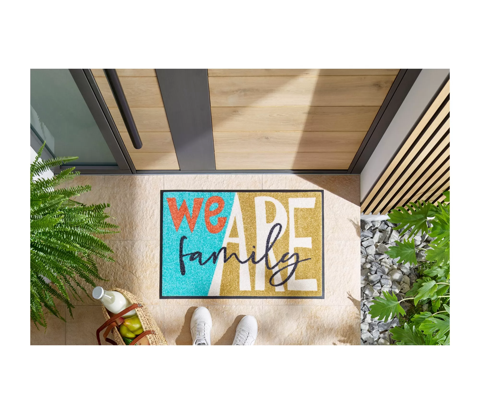 Durų kilimėlis Family Gang – tai linksmas ir iš karto dėmesį patraukiantis pasirinkimas, kuris pasitinka ne tik dizainu, bet ir nuotaika. Užrašas „We are family“ tampa pagrindiniu akcentu – jis kuria jaukumo jausmą ir primena, kad namai pirmiausia yra apie artumą. Tai detalė, kuri sukelia šypseną dar prieš įžengiant pro duris.
