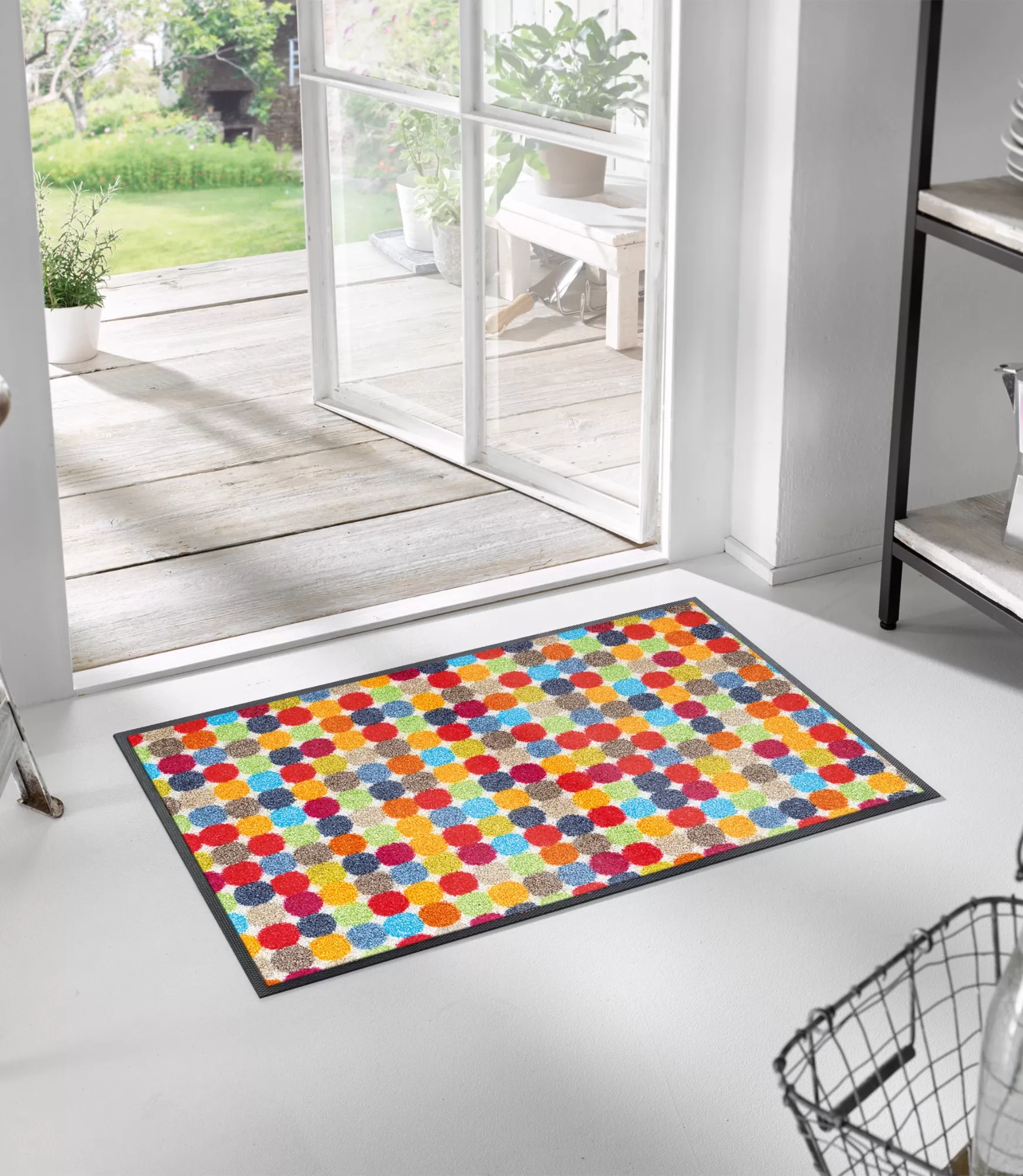 Durų kilimėlis Mikado Dots – tai pasirinkimas tiems, kurie nori daugiau gyvybės savo namų pradžioje. Smulkūs, įvairiaspalviai taškai sukuria dinamišką, bet kartu harmoningą vaizdą, kuris lengvai dera tiek šviesiuose, tiek tamsesniuose interjeruose. Toks dizainas ne tik dekoratyvus – jis vizualiai „paslepia“ kasdienius naudojimo pėdsakus, todėl ilgiau išlaiko tvarkingą įspūdį.