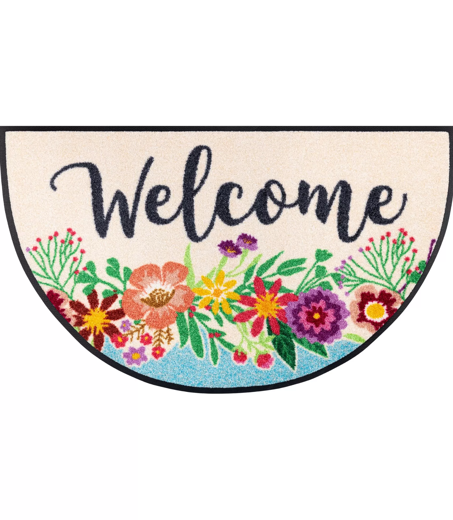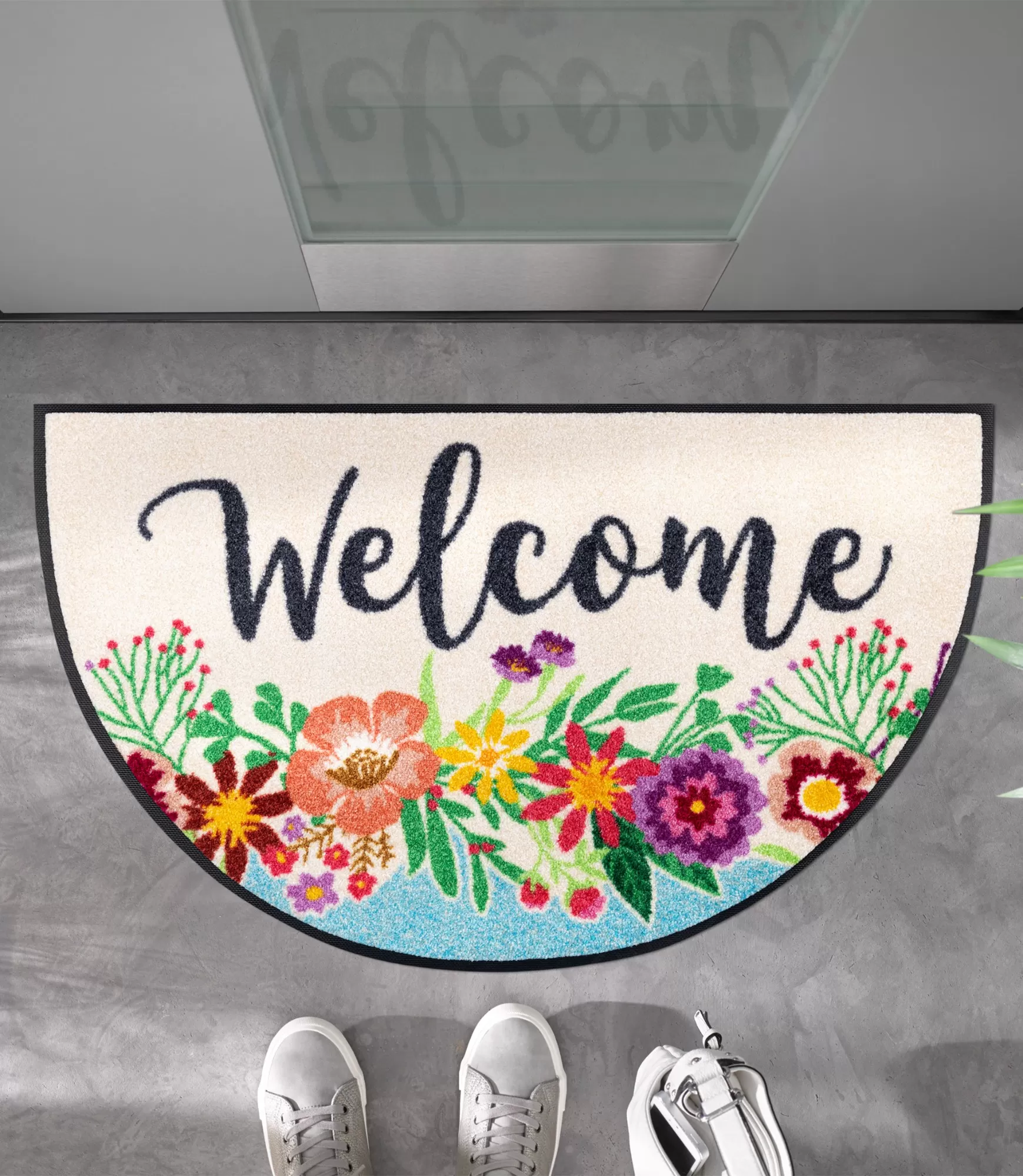 Durų kilimėlis Welcome Blooming iš karto sukuria jaukią ir kviečiančią nuotaiką. Šviesus fonas kartu su ryškiomis, gyvybingomis gėlių kompozicijomis suteikia lengvumo ir natūralumo pojūtį. Subtilus „Welcome“ užrašas ne tik pasitinka svečius, bet ir tampa stilinga detale, kuri pagyvina visą įėjimo zoną.