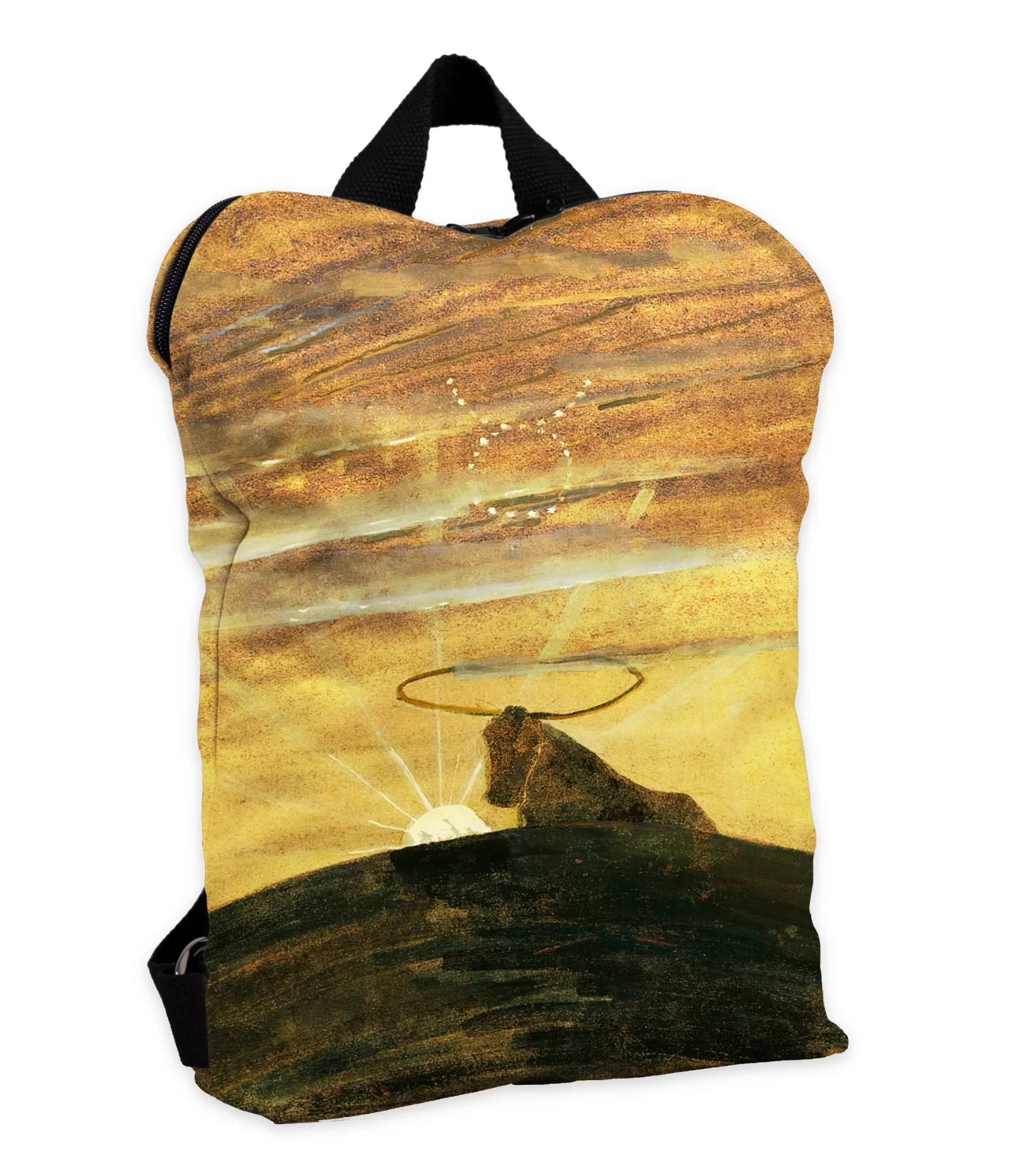 Kai menas susilieja su astrologine simbolika, gimsta kuprinė, kuri ne tik lydi kasdienybėje, bet ir kalba apie gilesnį pasaulio suvokimą. Ši stilinga moteriška kuprinė su M. K. Čiurlionio paveikslo „Saulė eina Jaučio ženklu“ motyvu yra vizualinis pavasario pažadas – ramus, derlingas, šviesus. Joje susilieja meninė Čiurlionio stilistika su astrologiniu ženklo charakteriu, todėl kiekvienas, kas pažvelgia į kuprinės dizainą, jaučia – tai daugiau nei aksesuaras. Tai – vidinės tylos, kūrybinės brandos ir žemiško stabilumo išraiška.