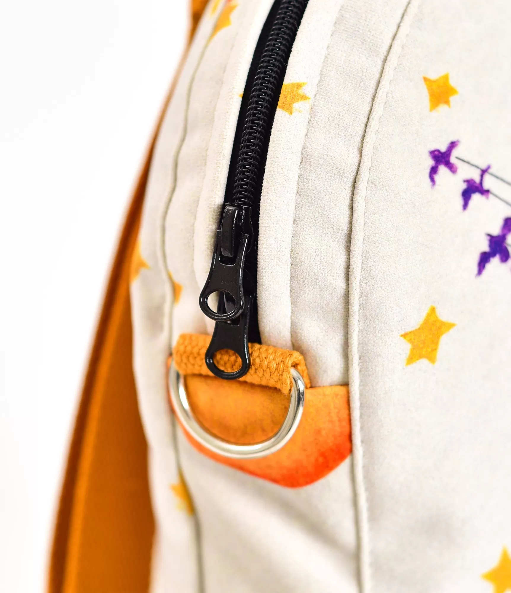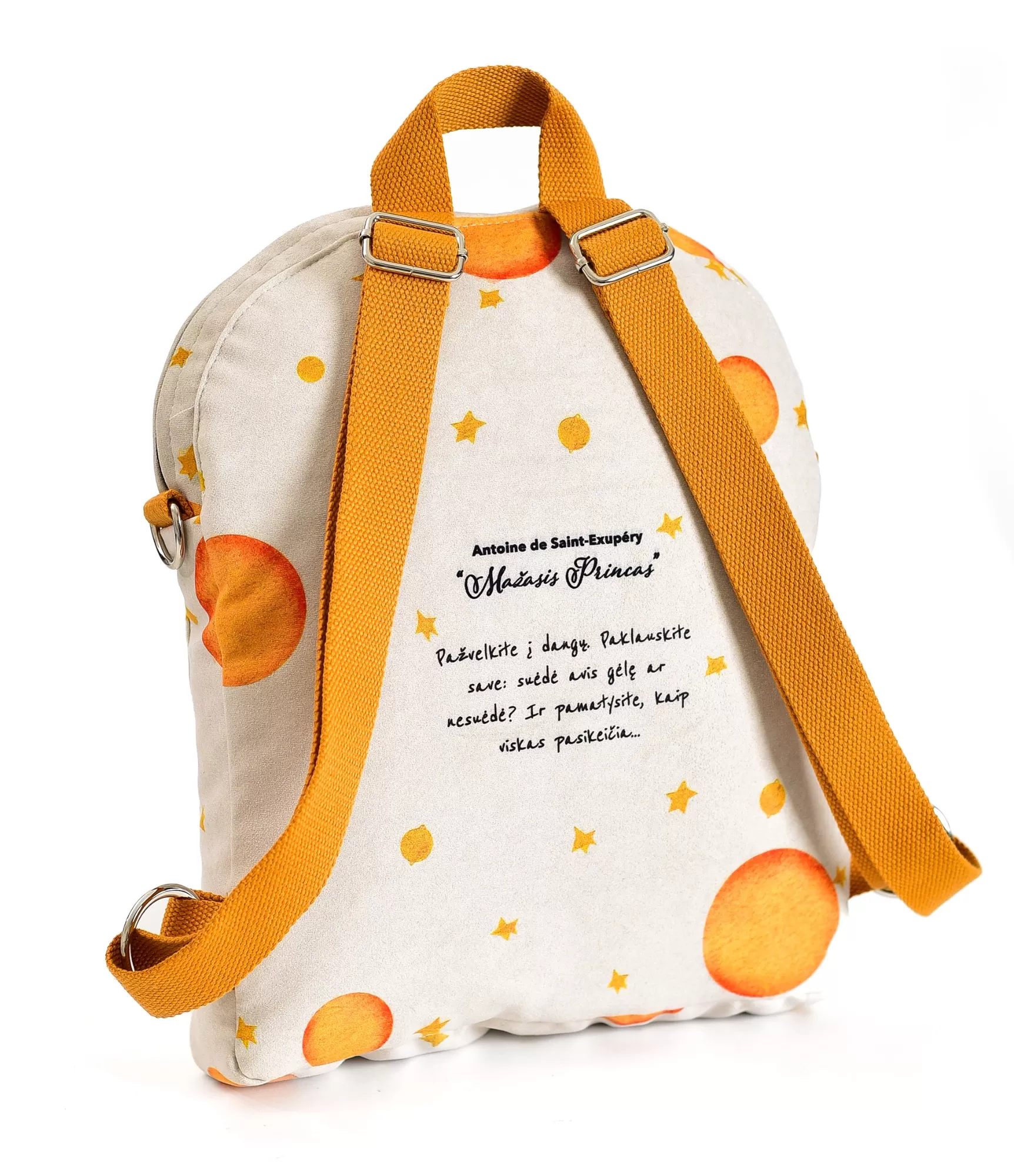 Talpi, didelė baltos spalvos kuprinė su Mažojo princo pasakos motyvais yra šviesi ir elegantiška. Šis aksesuaras ne tik suteiks pakankamai vietos jūsų reikmenims, bet ir pridės pasakos žavesio jūsų kasdieninei aprangai. Tai puikus pasirinkimas tiems, kurie mėgsta subtilų ir stilingą stilių bei nori įtraukti įdomų motyvą į savo aprangos detalę.