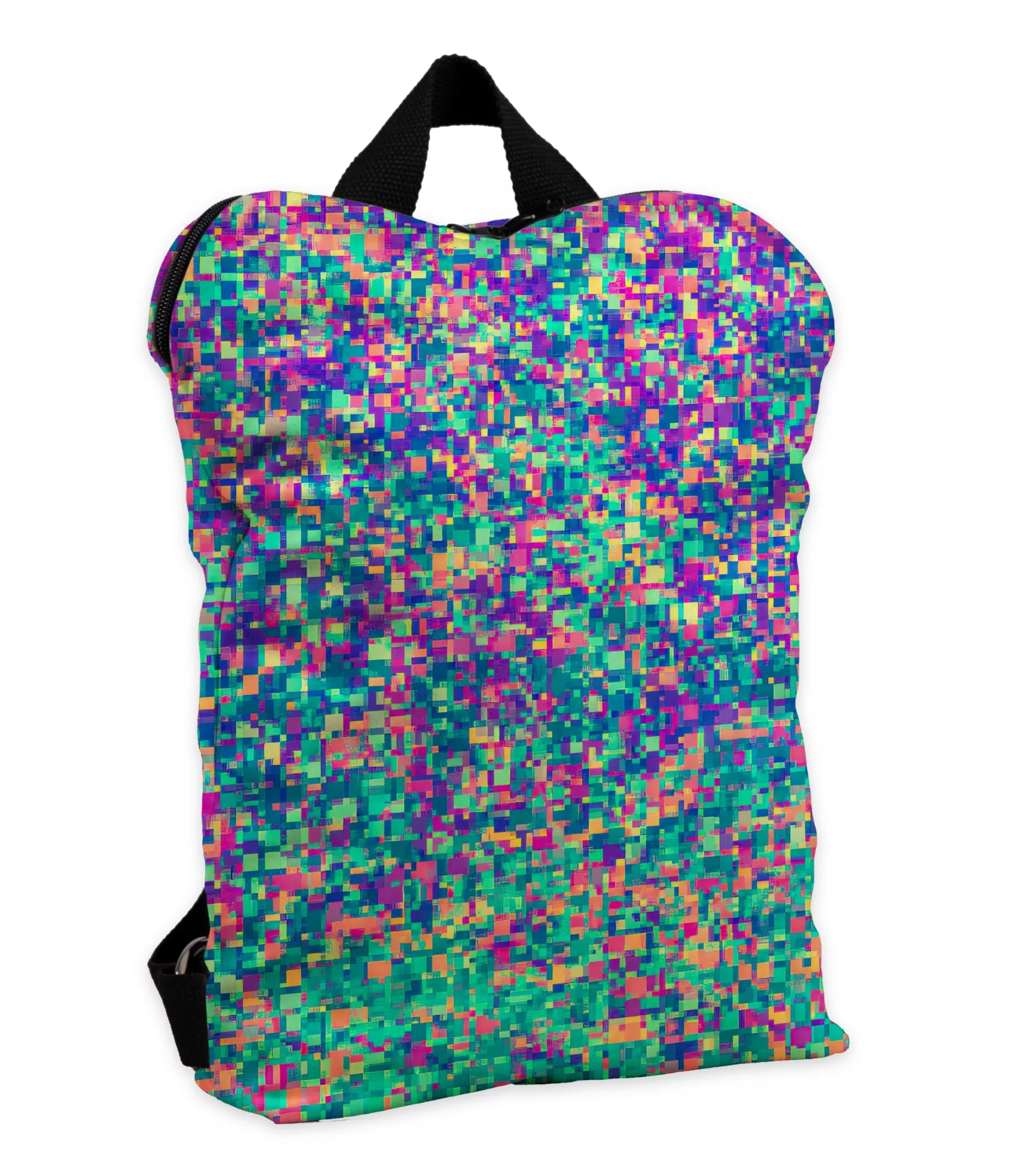 Kaip atrodo miesto ritmas, jei jį būtų galima pamatyti spalvomis? Būtent taip – kaip ši kuprinė. Jos paviršiuje žaidžia tūkstančiai spalvotų pikselių, lyg būtum atsidūrusi tarp dviejų pasaulių: tarp virtualaus ir tikro. Neoninė žalia susilieja su ryškia fuksija, elektroninė mėlyna maišosi su rožine ir oranžine – visa tai tampa savotišku vizualiniu triukšmu, kuriame slypi ritmas.