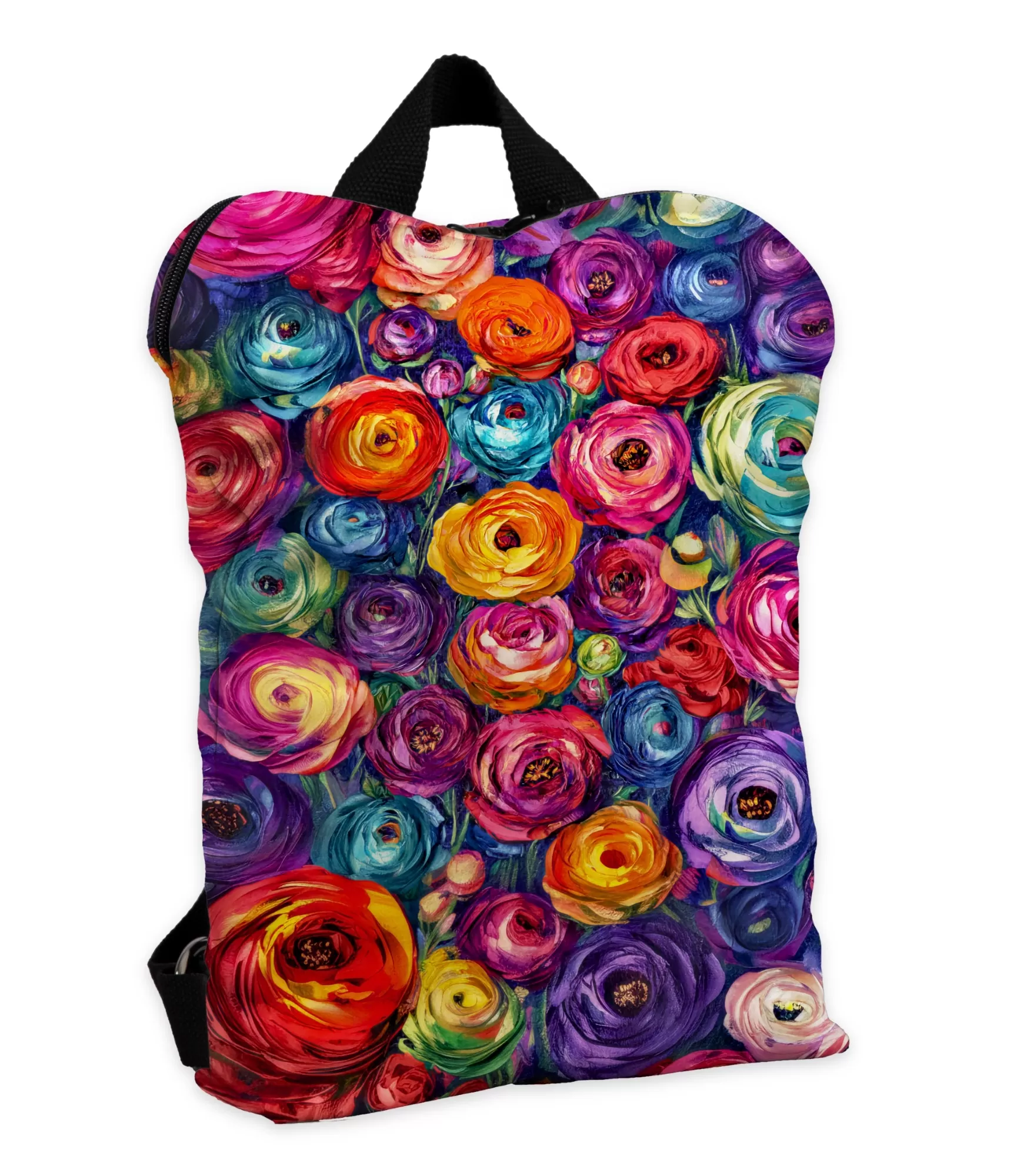 Jei spalvos galėtų skambėti, ši kuprinė skambėtų kaip vasariška simfonija. Aliejinės tekstūros gėlės susilieja į sodrų, pulsavimu alsuojantį raštą, kuriame kiekvienas žiedas – tarsi garsas. Kuprinės paviršius užpildytas ryškiais žiedais, nutapytais ekspresyviai, su judesiu, su nuojauta, su emocija. Tai ne šiaip raštas – tai paveikslas, kuris gyvena ant audinio.