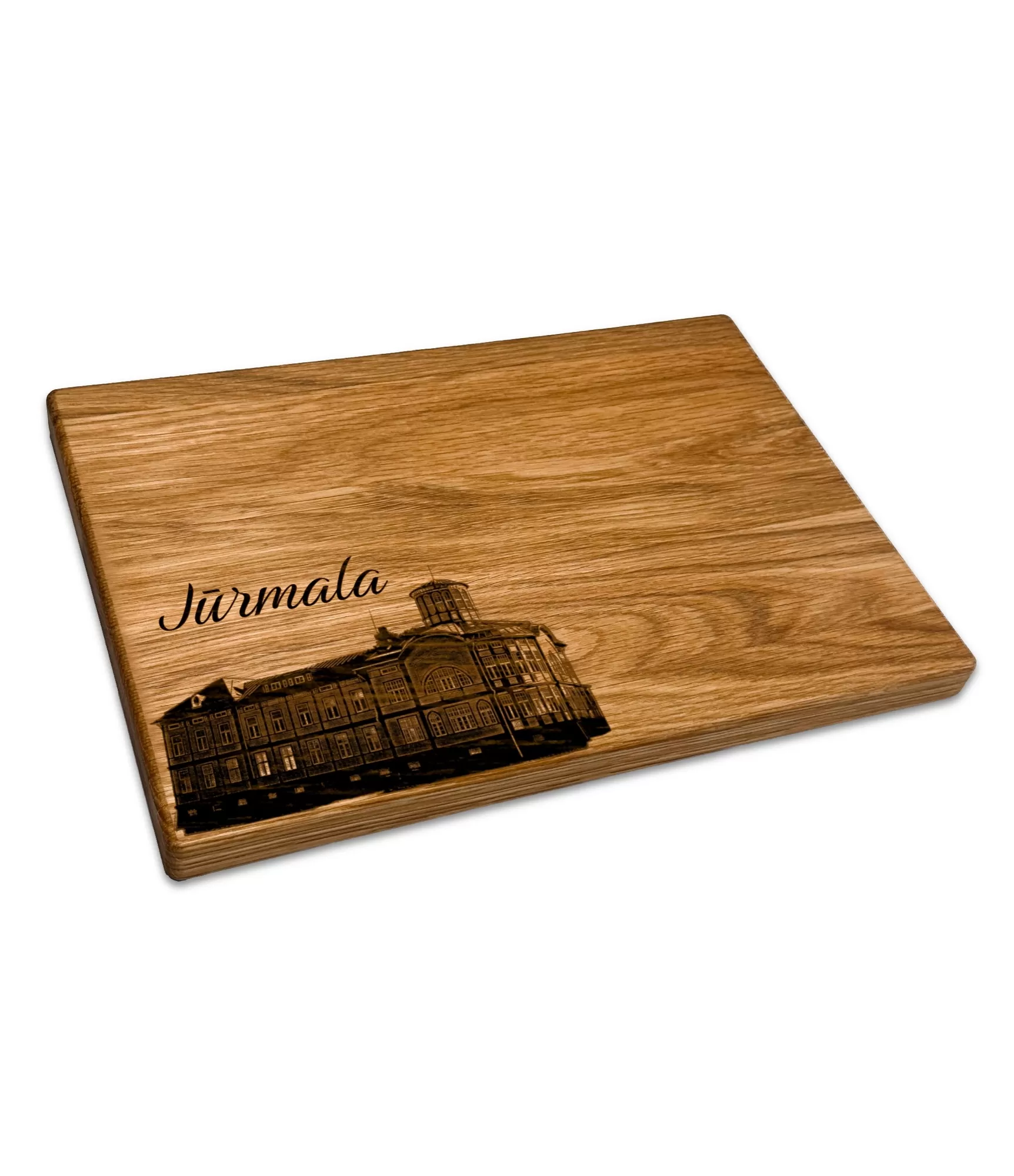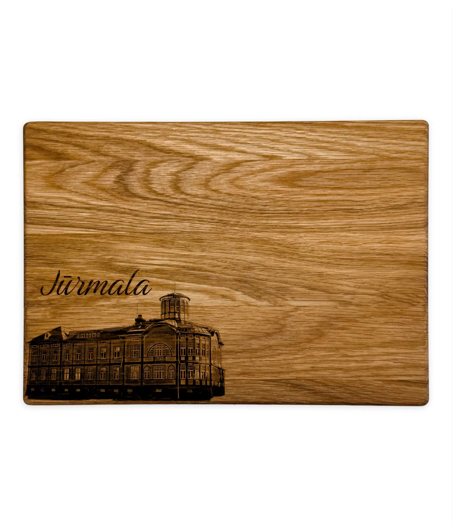 Stilinga pjaustymo lentelė "Latvijos miestai Jurmala CB-2657" yra praktiškas ir jaukus suvenyras, kuriame įamžinta populiariausio Latvijos kurorto dvasia. Graviruotas istorinės Emilijos Racenės maudyklos vaizdas suteikia šiam gaminiui elegancijos bei lengvumo pojūtį, todėl ši lentelė tampa ne tik praktišku virtuvės aksesuaru, bet ir stilingu interjero elementu. Tai idealus pasirinkimas norint estetiškai patiekti lengvus užkandžius ar vaisius bei mintimis sugrįžti į saulėtas dienas Baltijos jūros pakrantėje.