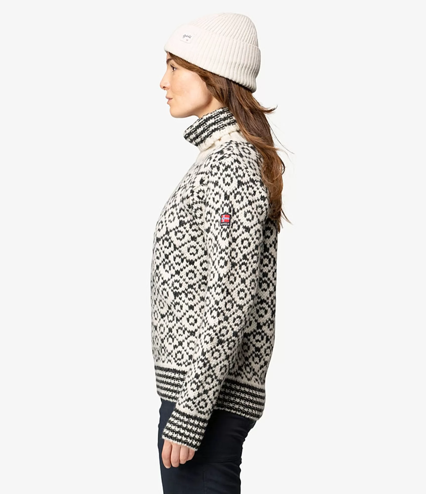 Devold Svalbard megztinis – praktiškas ir stilingas pasirinkimas žiemai. Pagamintas iš 100 % norvegiškos vilnos (32–36 mikronai), jis išlaiko kūno šilumą, leidžia odai kvėpuoti ir ilgai tarnauja. Pilkos ir baltos spalvų derinys suteikia subtilios elegancijos, o skandinaviški raštai išlaiko tradicinį, atpažįstamą Devold stilių.
