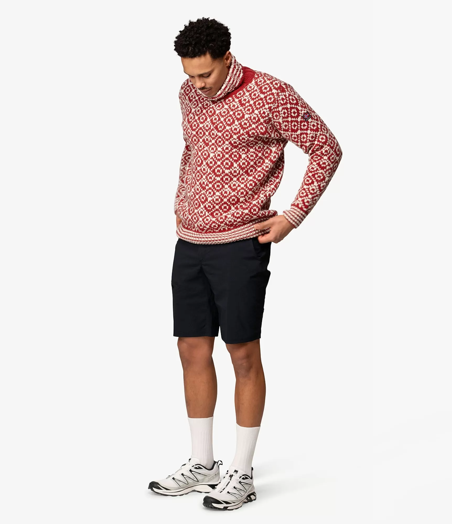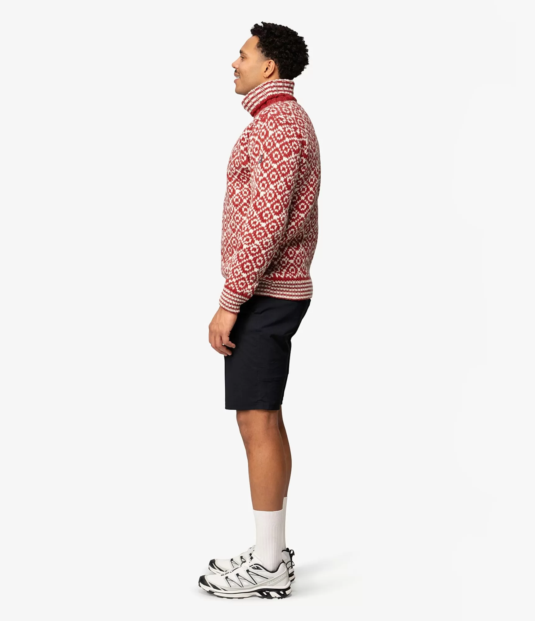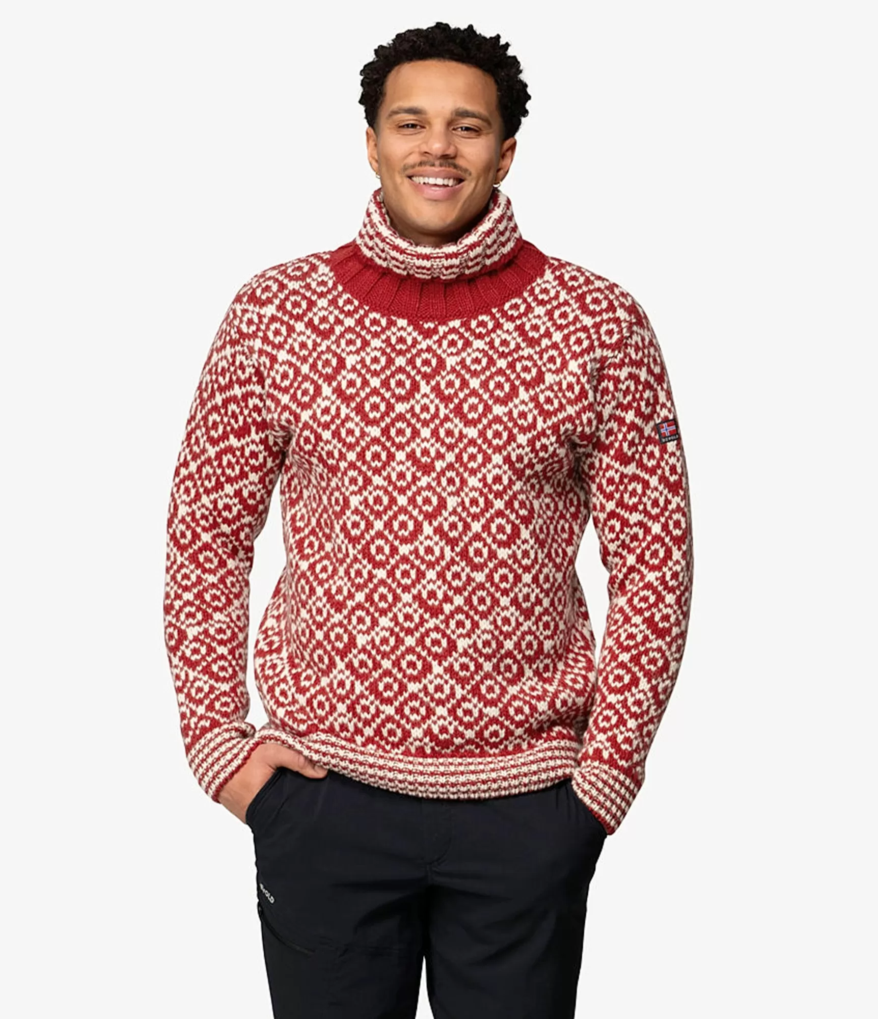 Raštuotas vyriškas vilnonis megztinis raudonos ir baltos spalvų derinio yra tikras šaltojo sezono atradimas, kai norisi derinti praktiškumą ir stilių. Šis megztinis priklauso „Svalbard Originals“ kolekcijai ir išsiskiria ne tik išskirtine spalvų palete – „Hindberry / Offwhite“, bet ir kruopščiai išdirbta struktūra. Megztinio raštai įkvėpti šiaurietiškų motyvų, todėl jie vizualiai patrauklūs ir sukuria įspūdį, kad drabužis pasakoja istoriją. Vilna yra tanki, sveria 32–36 mikronus, tad šilumos nepritrūks net vėjuotą dieną. Megztinis maloniai priglunda prie kūno, tačiau kartu leidžia laisvai judėti, nes yra Loose Fit tipo – puikiai tinka tiek vyrams, tiek moterims. Tai universalus pasirinkimas, kurio nespėsi nuobodžiauti – jis tinka tiek miesto pasivaikščiojimams, tiek kelionėms ar laisvalaikiui gamtoje.