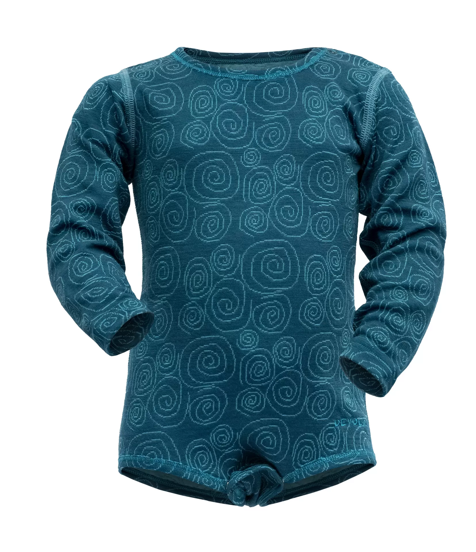 Šie mėlynos „Flood“ spalvos Devold Duo Active Merino smėlinukai kūdikiams iš karto patraukia akį subtiliu, ramiu dizainu. Smulkus, sūkuriais dekoruotas raštas suteikia drabužiui žaismingumo, tačiau išlieka estetiškai švarus ir lengvai derinamas prie kitų kūdikio garderobo detalių. Tai drabužėlis, kuris atrodo gražiai tiek kasdienėje rutinoje, tiek ypatingesnėmis akimirkomis.