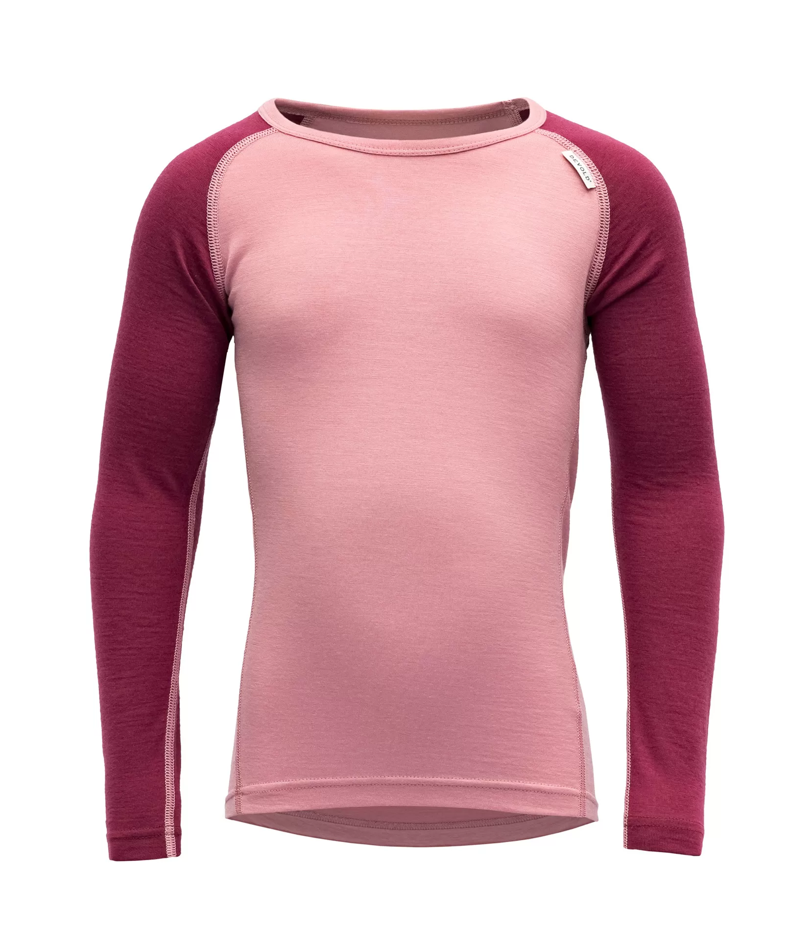 Devold Breeze Merino Shirt Kid – tai švelni, lengva ir labai patogi termo palaidinė vaikams, kuri iš karto patraukia dėmesį savo žaismingu spalvų deriniu. Šviesiai rausvas priekis ir nugara subtiliai kontrastuoja su sodriomis bordo spalvos rankovėmis, todėl ši palaidinė atrodo gyvai, stilingai ir vaikams labai patinka. Toks spalvų žaismas suteikia drabužiui išskirtinumo ir leidžia vaikui jaustis ne tik šiltai, bet ir gražiai apsirengusiam.