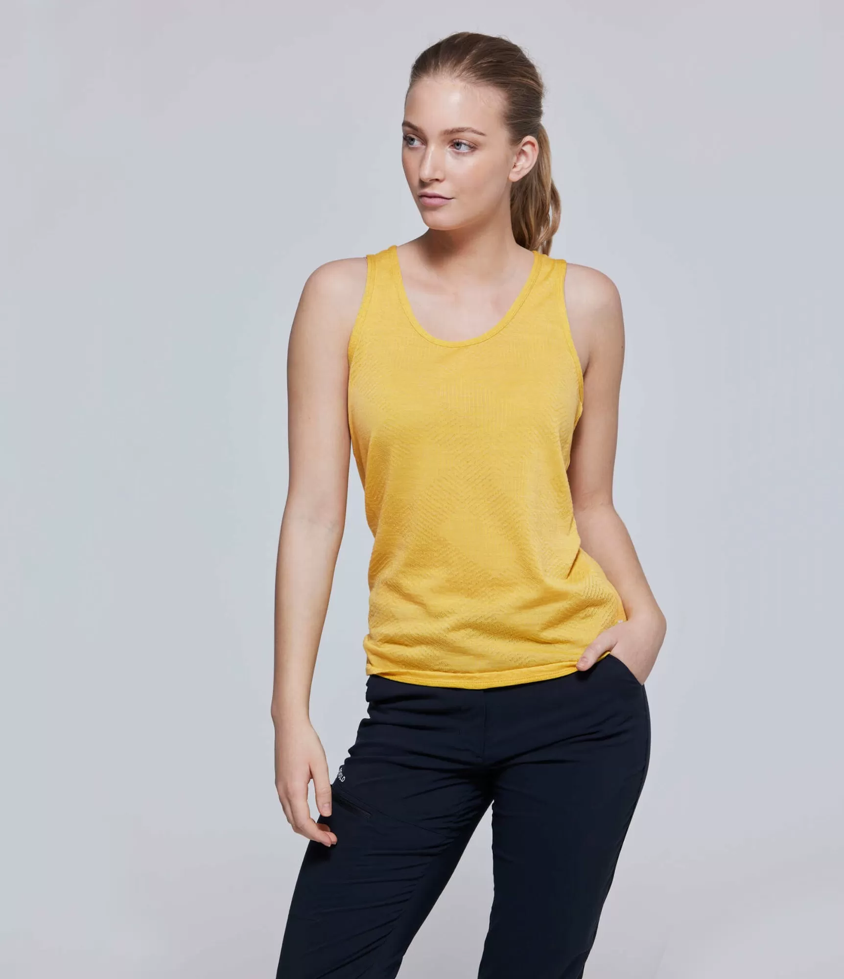 Ši šviesiai geltona Devold Lifestyle kolekcijos palaidinė be rankovių sukurta moterims, vertinančioms natūralumą, komfortą ir subtilų stilių. Honey atspalvis spinduliuoja šviesą ir energiją, suteikdamas aprangai gaivos bei optimizmo. Tai universali palaidinė, kuri puikiai tinka tiek aktyvioms dienoms, tiek jaukiam poilsiui – nuo ryto pasivaikščiojimų iki vakarinės jogų treniruotės ar kelionės.