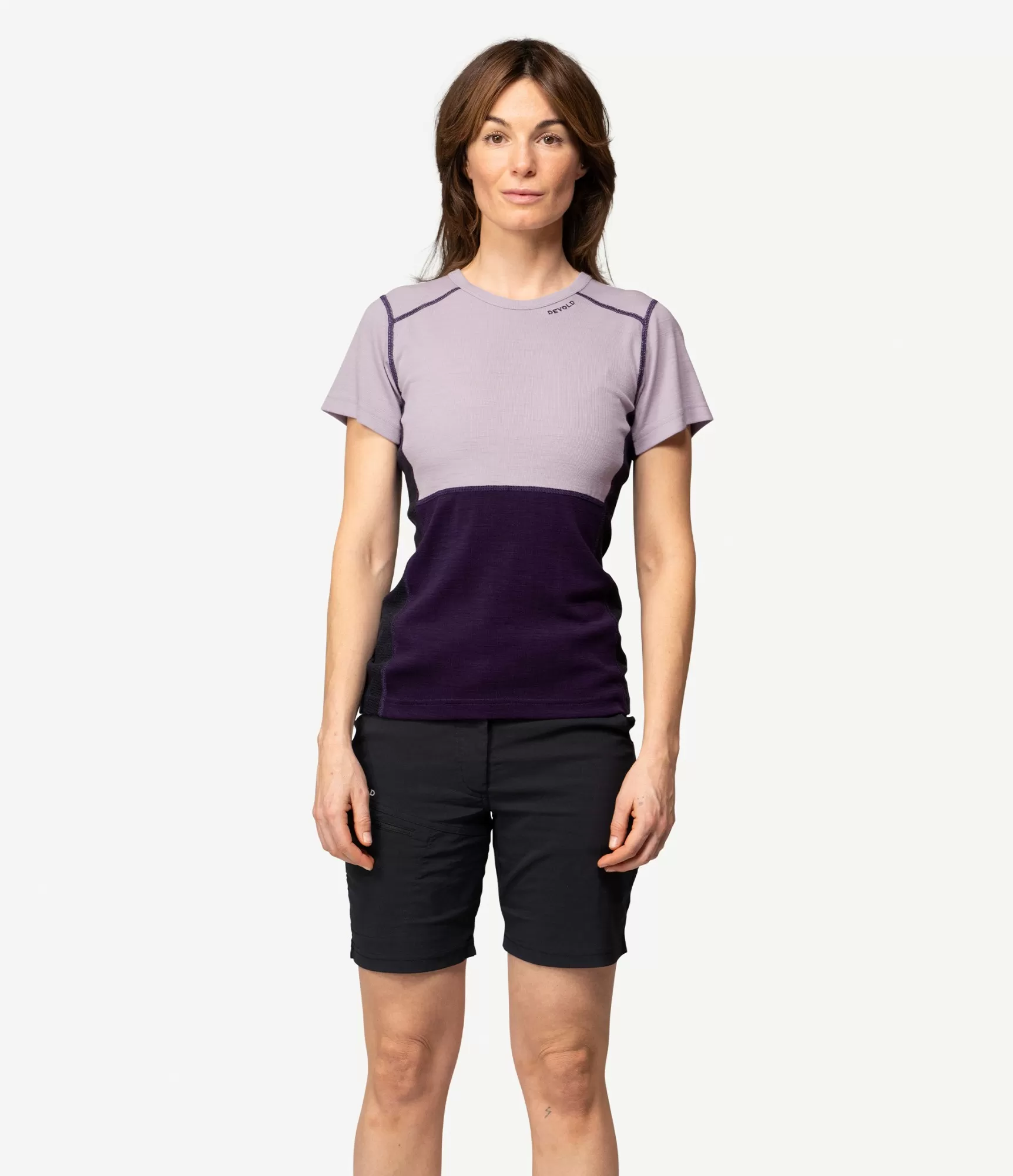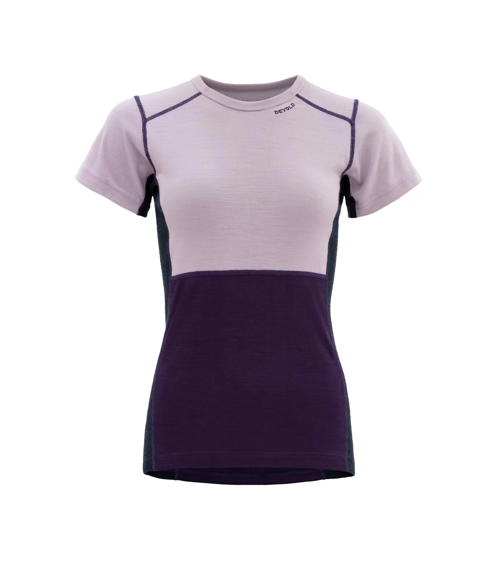Devold Lauparen Merino 190 marškinėliai moterims Orchid / Lilac / Ink. Atraskite švelnumo, spalvų ir komforto harmoniją.