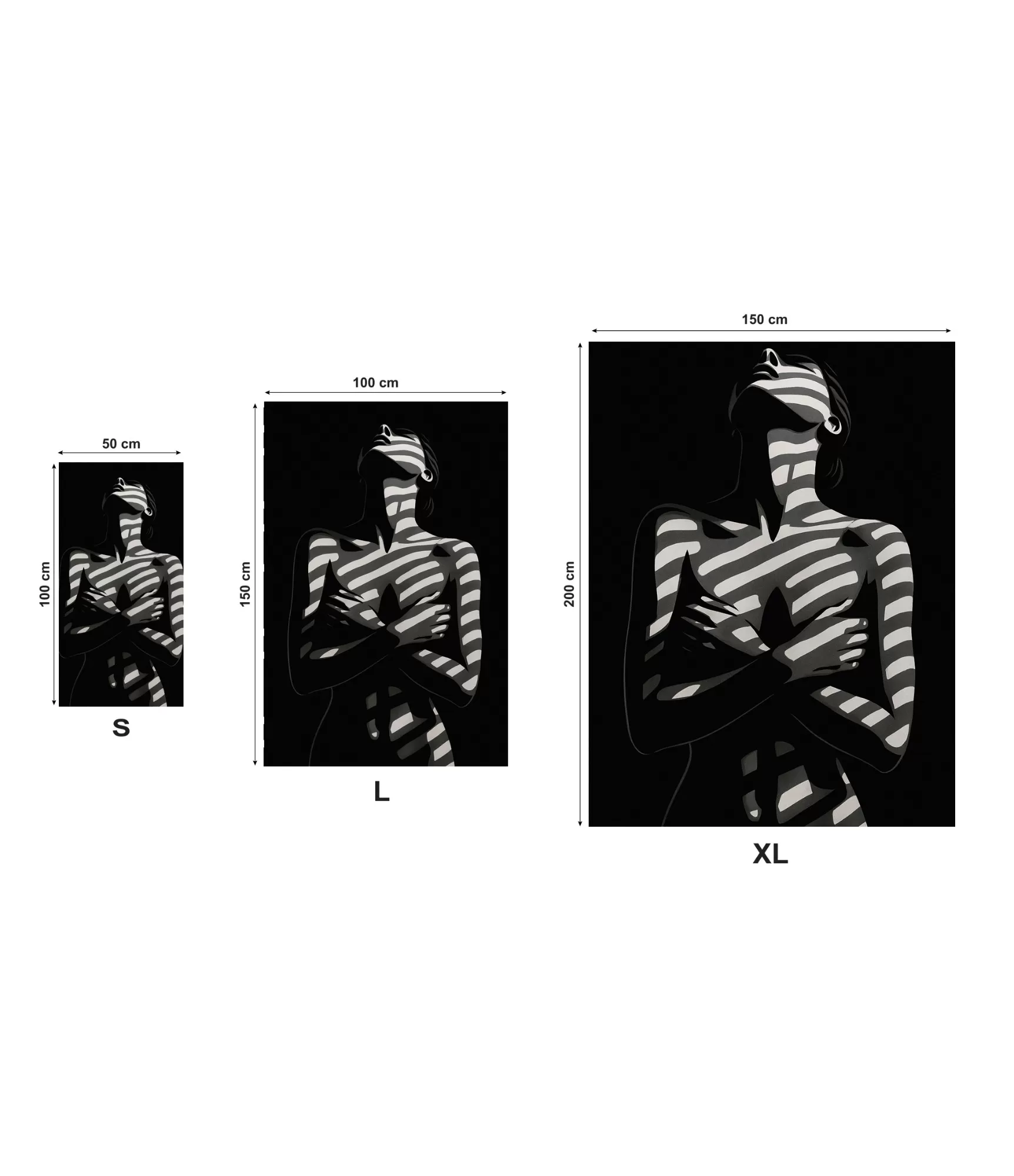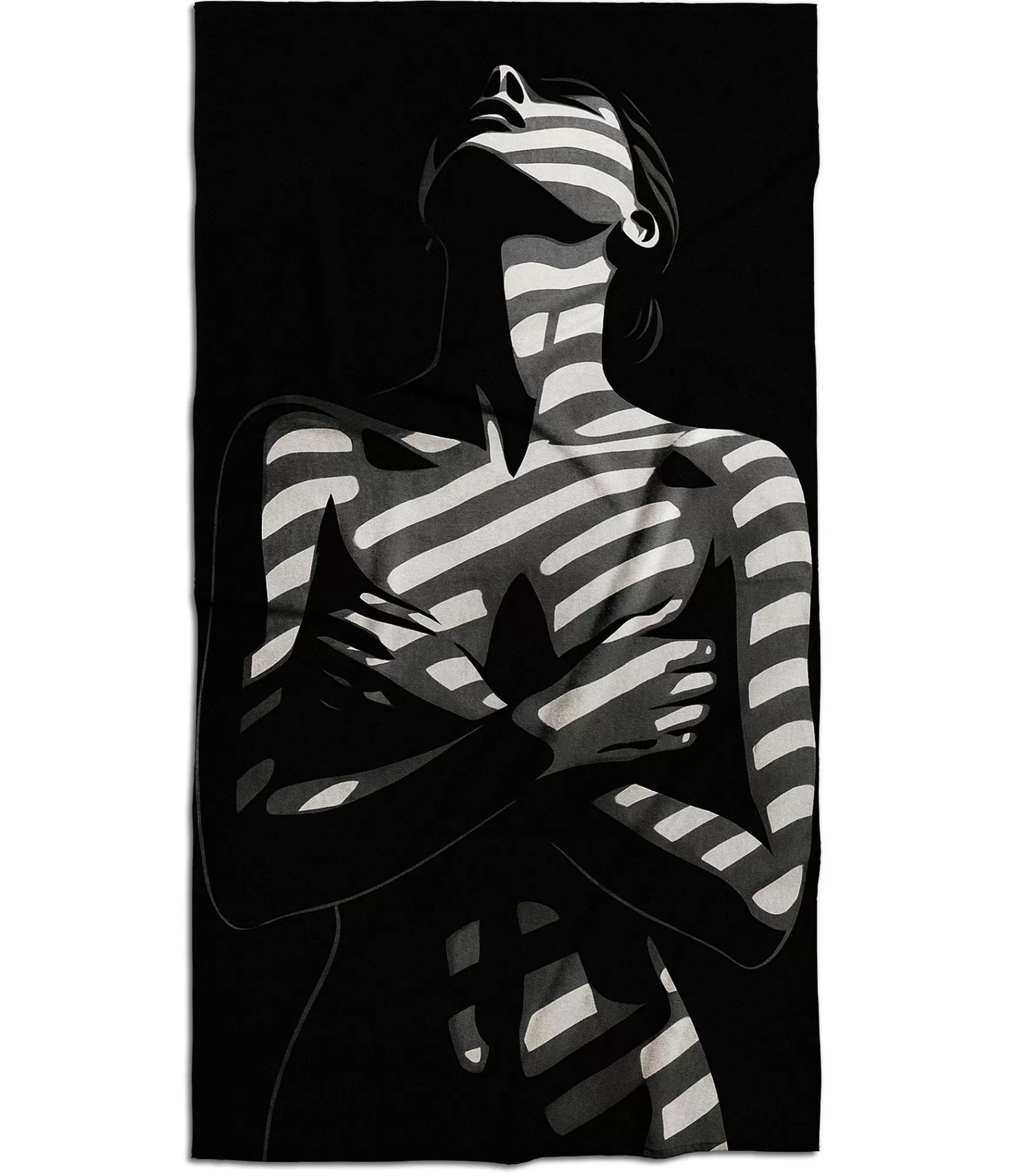 Pirmasis žvilgsnis į šį rankšluostį prilygsta įėjimui į meninę instaliaciją – tą akimirką, kai šviesa ir šešėliai tampa emocijos kalba. Juodame fone išraižytas moters siluetas, nutviekstas horizontaliomis šviesos juostomis, sukuria hipnotizuojančią grafiką, kurioje kiekvienas atspalvis – tarsi emocinis potėpis. Šis dizainas kalba ne tik apie kūną, bet ir apie šviesos buvimą ten, kur jos mažiausiai tikėtumeisi. Apšviesta veido ir kūno geometrija virsta poezija, kurioje susilieja linijos, vidinė stiprybė ir pažeidžiamumas.