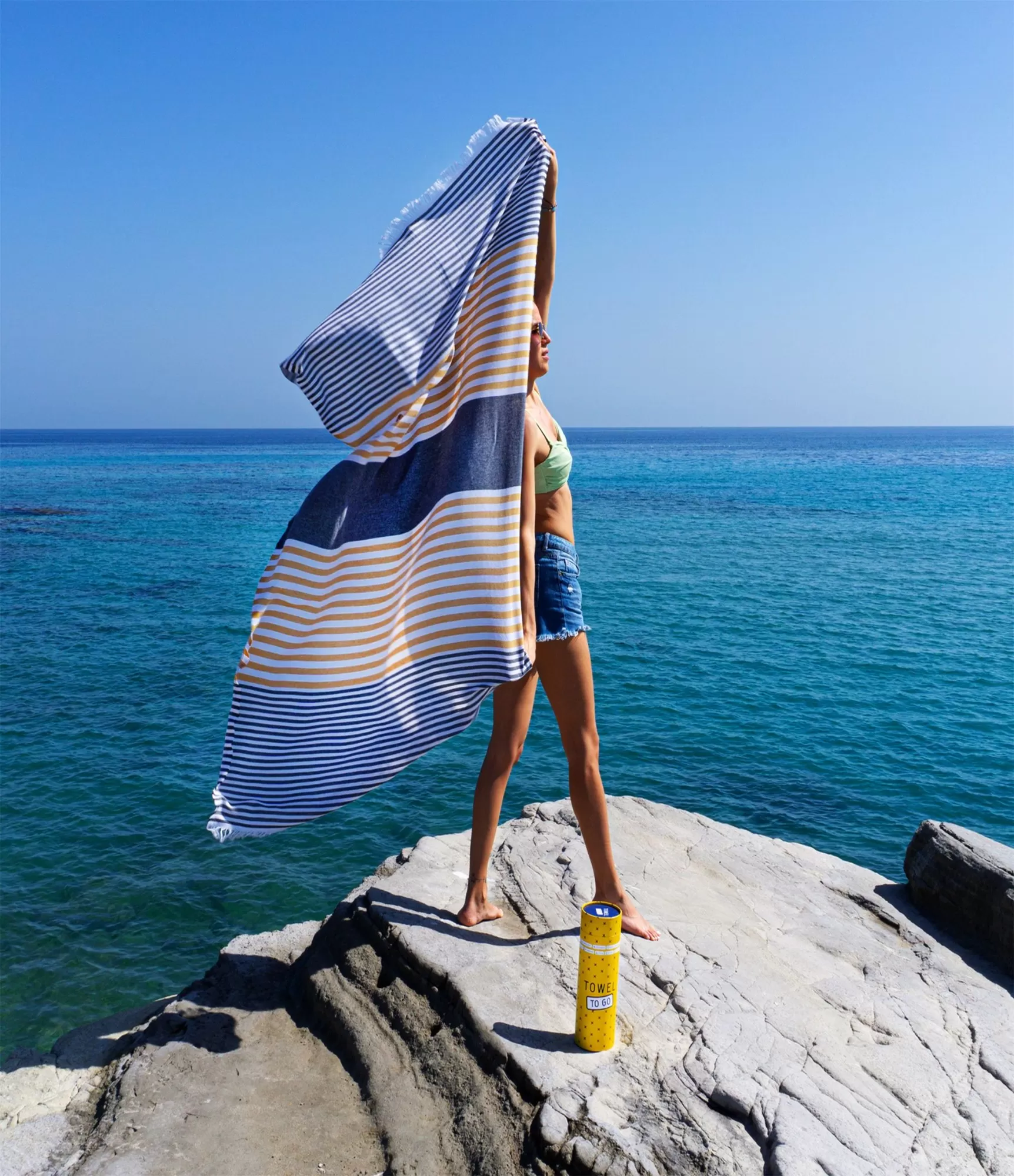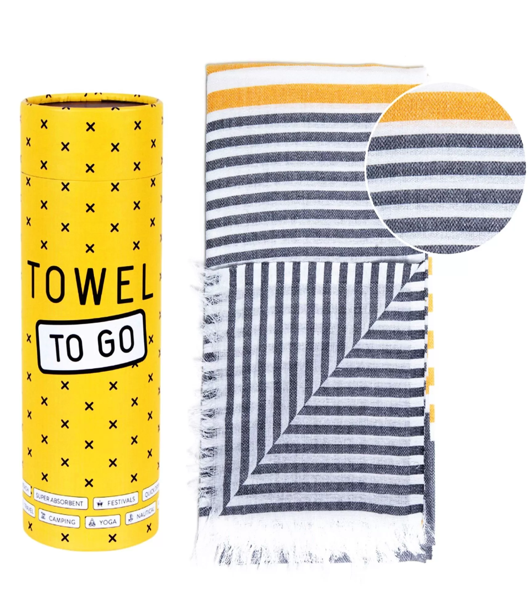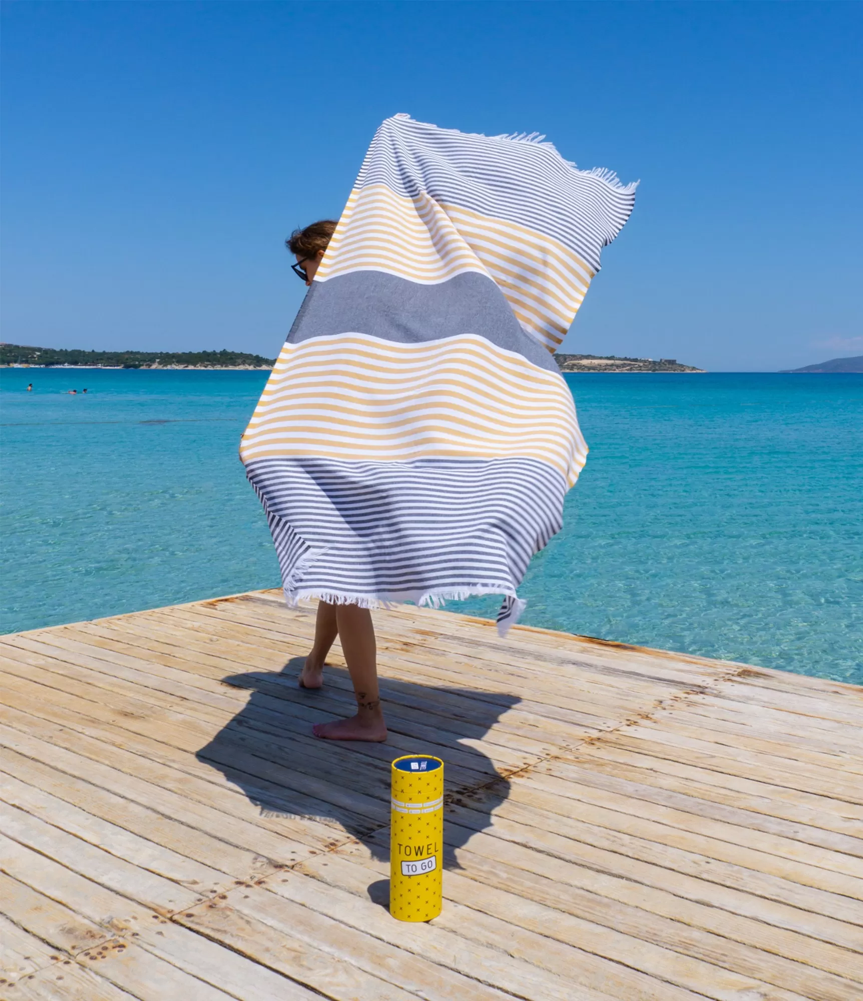 Rankšluostis dekoruotas horizontaliomis geltonai baltomis, pilkomis ir juodai baltomis linijomis, primenančiomis tiek šilto smėlio bangeles, tiek jūros dryžuotą horizontą. Šis kontrastingas, bet švelnus spalvų žaismas leidžia jam derėti tiek prie klasikinių maudymosi kostiumėlių, tiek prie bohemiškų vasaros derinių. Be to medvilninis paplūdimio rankšluostis yra itin plonas ir lengvas, tad idealiai tinka kelionėms. Šio tipo rankšluostis – tai ir dovana, ir mados aksesuaras. Dėl savo išskirtinės pakuotės ir dizaino, jis puikiai tinka kaip: