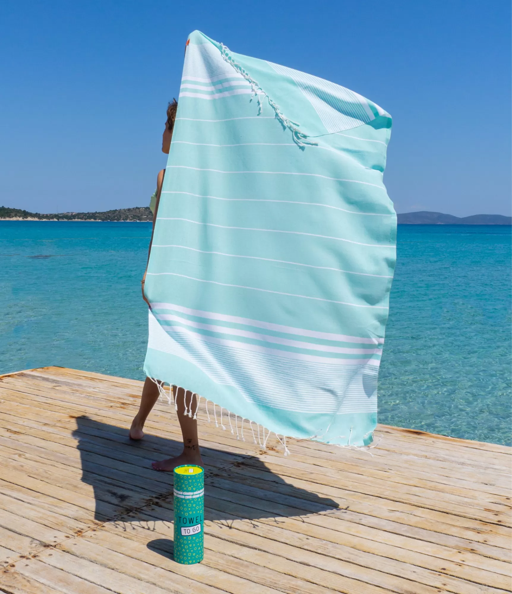Tai ne tik rankšluostis – tai jūsų vasaros palydovas, kuris visada šalia, nes yra kompaktiškas ir telpa net į nedidelę rankinę. Kita vertus šio modelio išvaizda – išgryninta iki tobulumo. Šviesiai mėtų pagrindas, baltos horizontalios juostos, kutai, laisvai krentantys ties kraštais – viskas apgalvota iki paskutinės detalės. Skonio pojūtis čia išreiškiamas per paprastumą.
