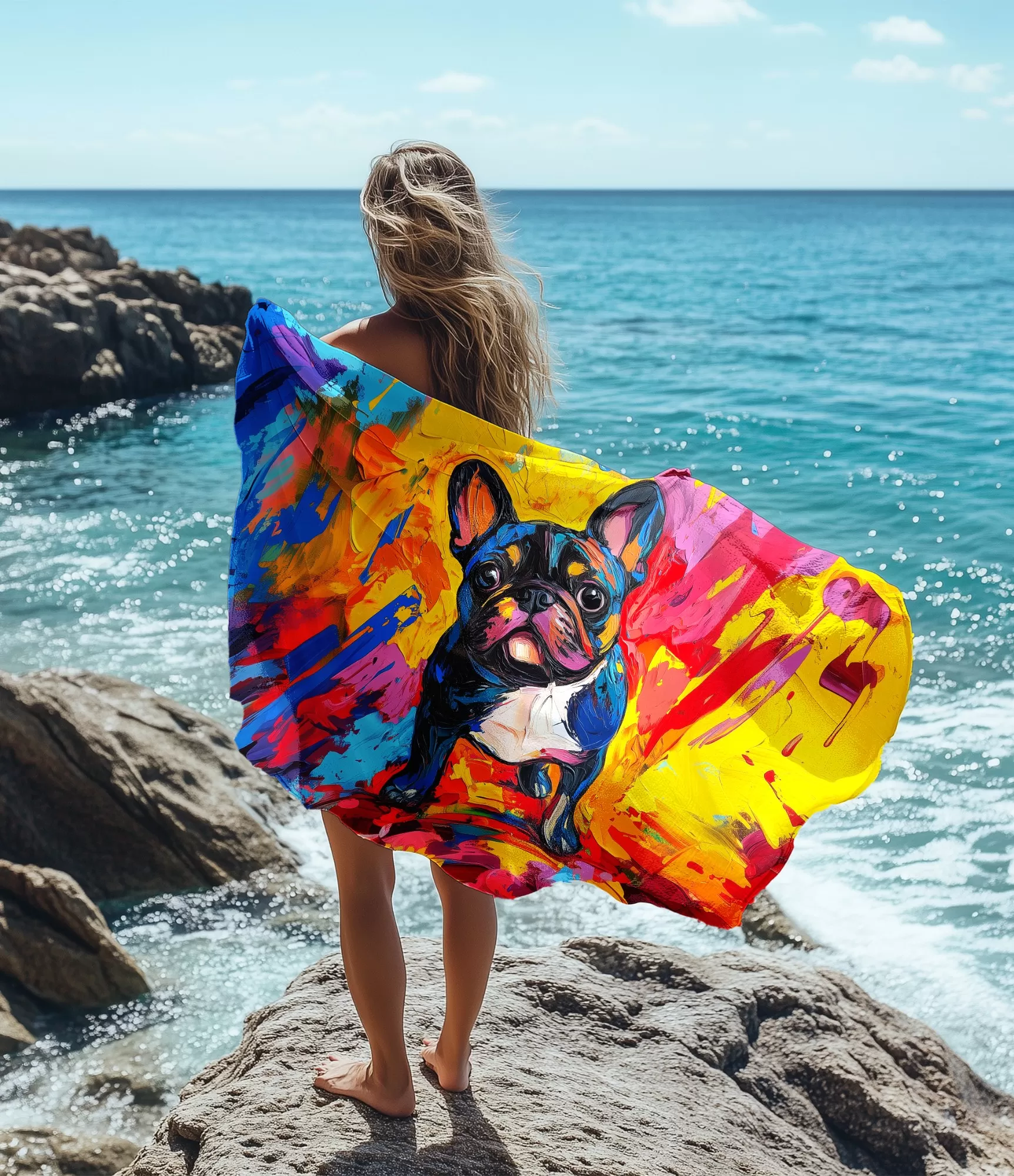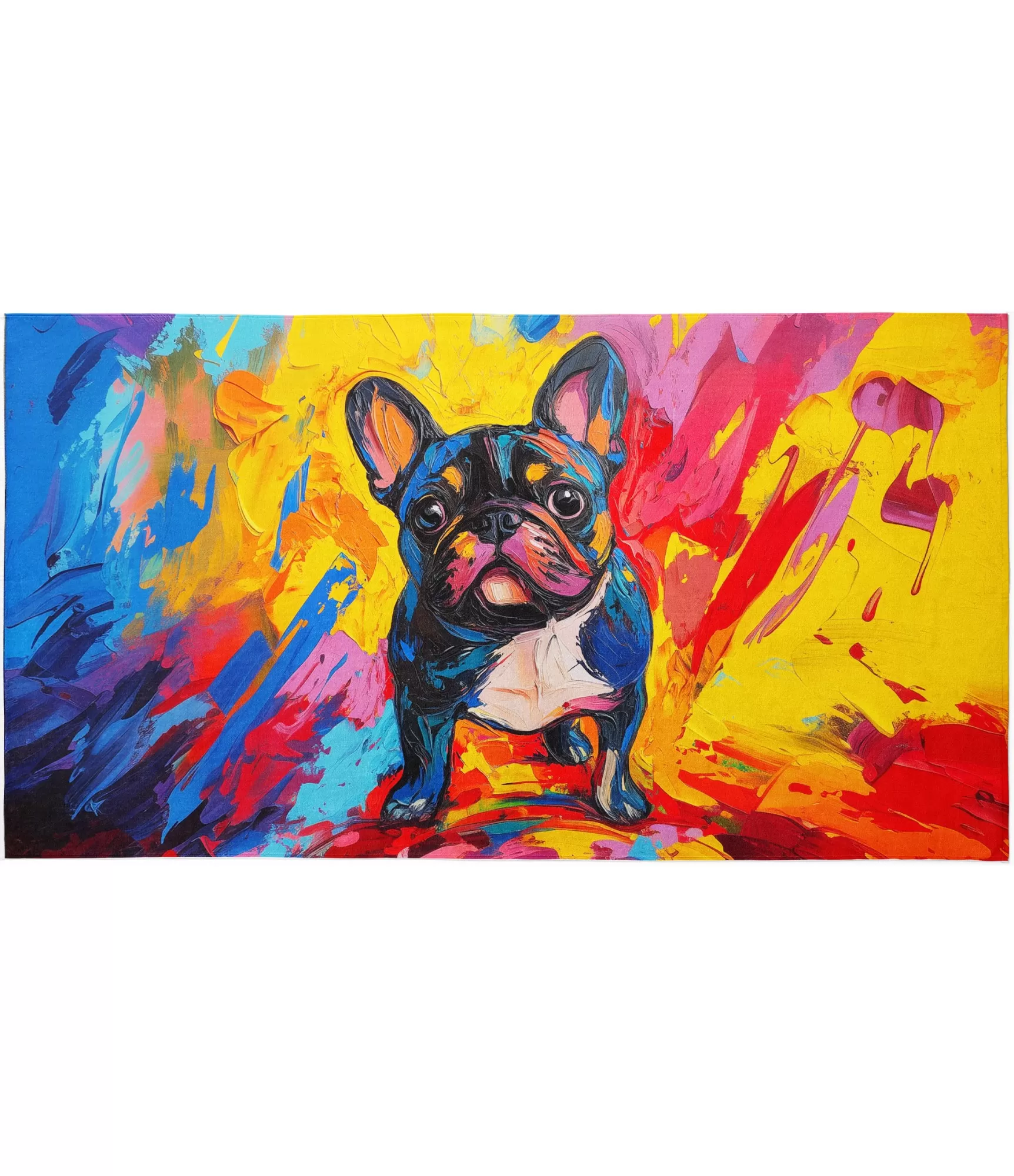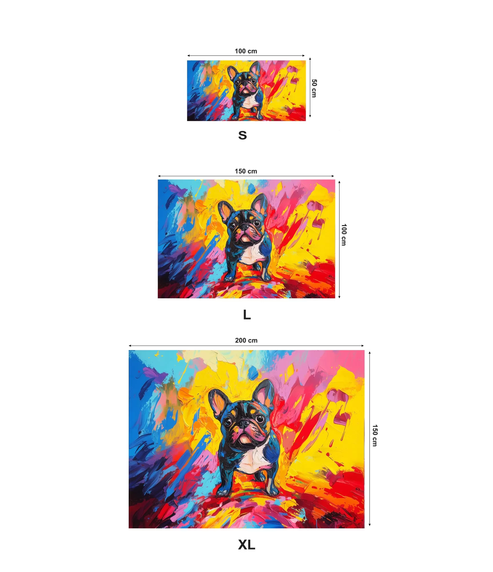Prancūzų buldogas – tai viena iš populiariausių šunų veislių. Šis nuostabių atspalvių minkštas bei švelnus rankšluostis su Prancuzų buldogu – tai nuostabi dovana šunų mylėtojui. Tai praktiška ir originali dovana kai jums kyla klausimas – Ką dovanoti šuns augintojui?