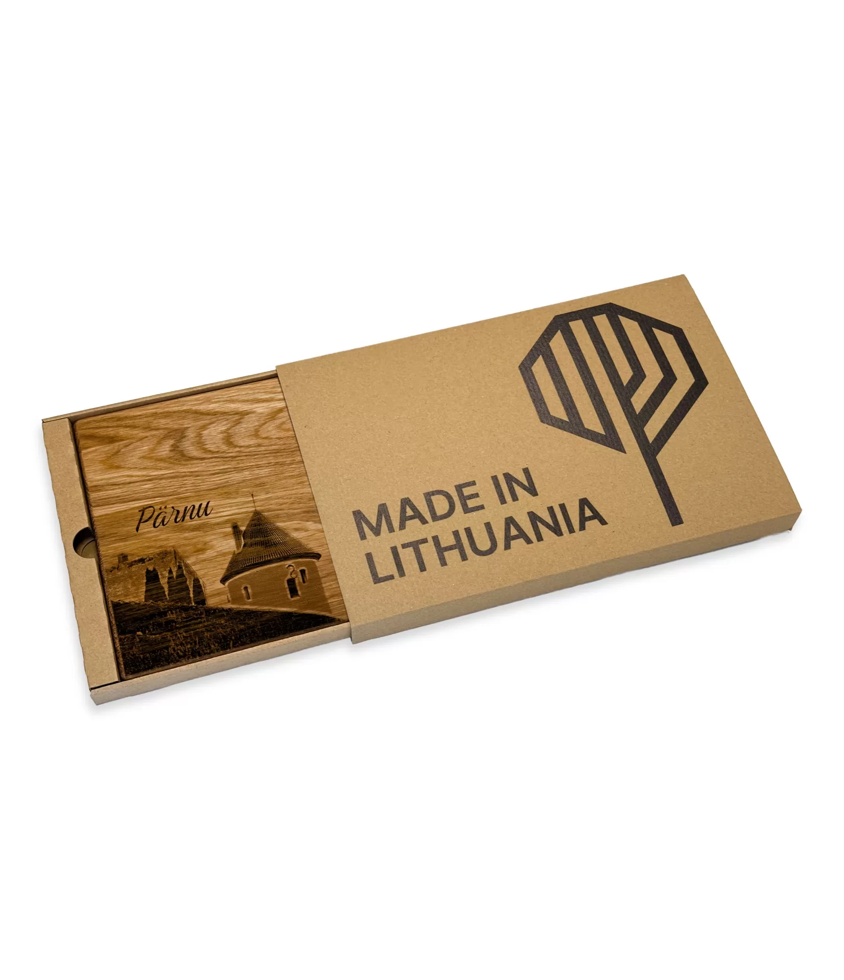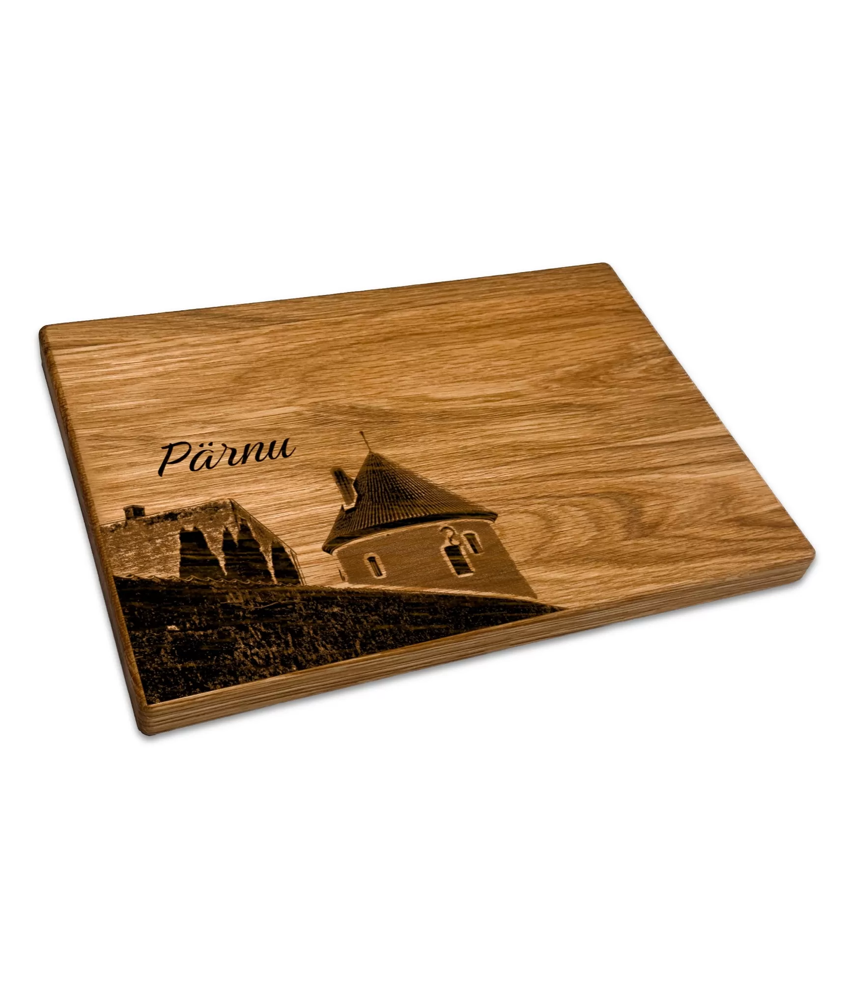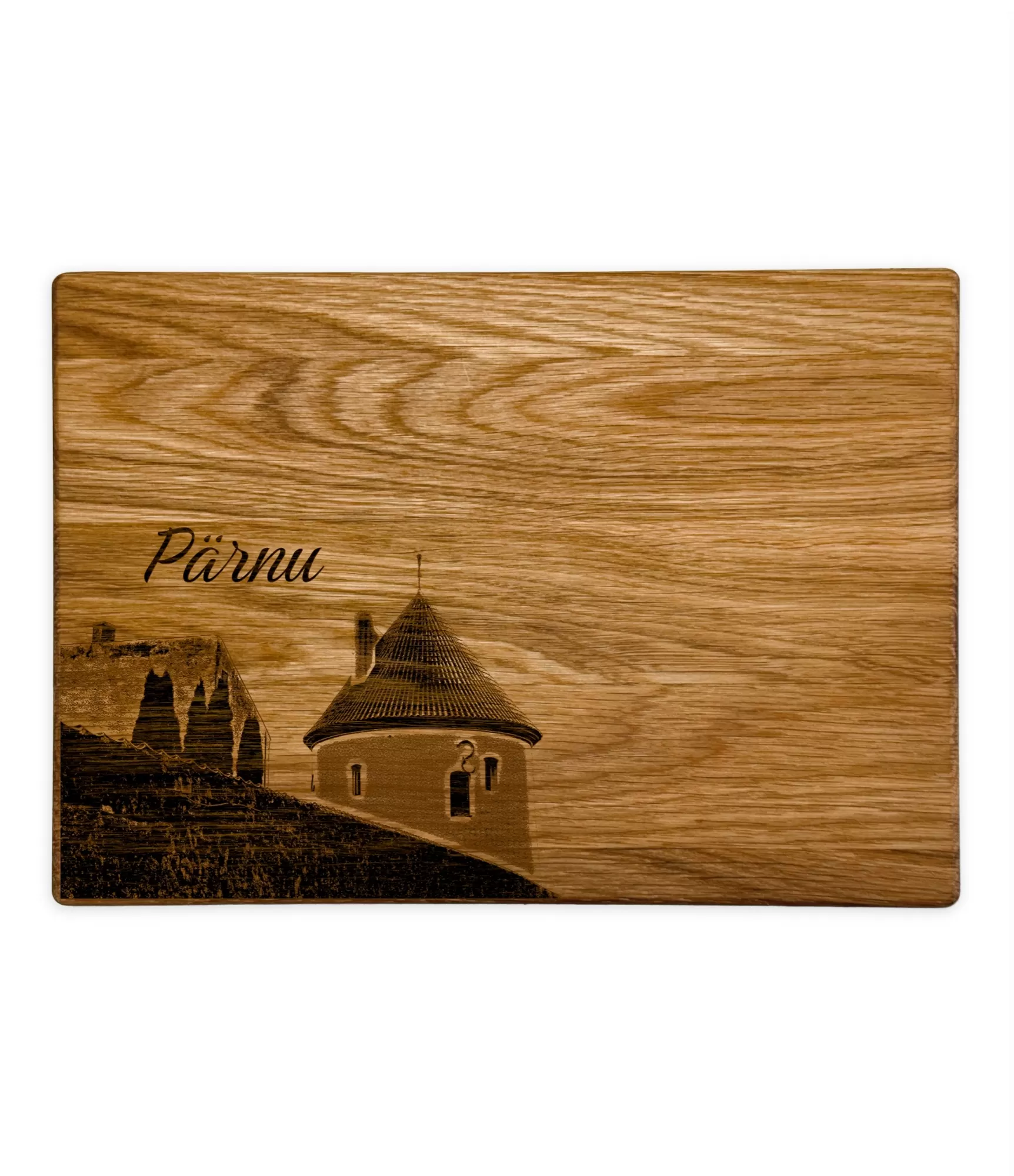 Medinė pjaustymo lentelė "Estijos miestai Pärnu CB-2660" yra stilingas gaminys, kuriame įamžintas senosios Pernu pilies motyvas. Kruopštus graviravimas suteikia šiam virtuvės aksesuarui estetinio vientisumo bei išliekamosios vertės, todėl ši lentelė tampa ne tik praktišku įrankiu, bet ir jaukiu namų akcentu. Tai puikus pasirinkimas norint stilingai patiekti maistą namuose ar kelionėse.