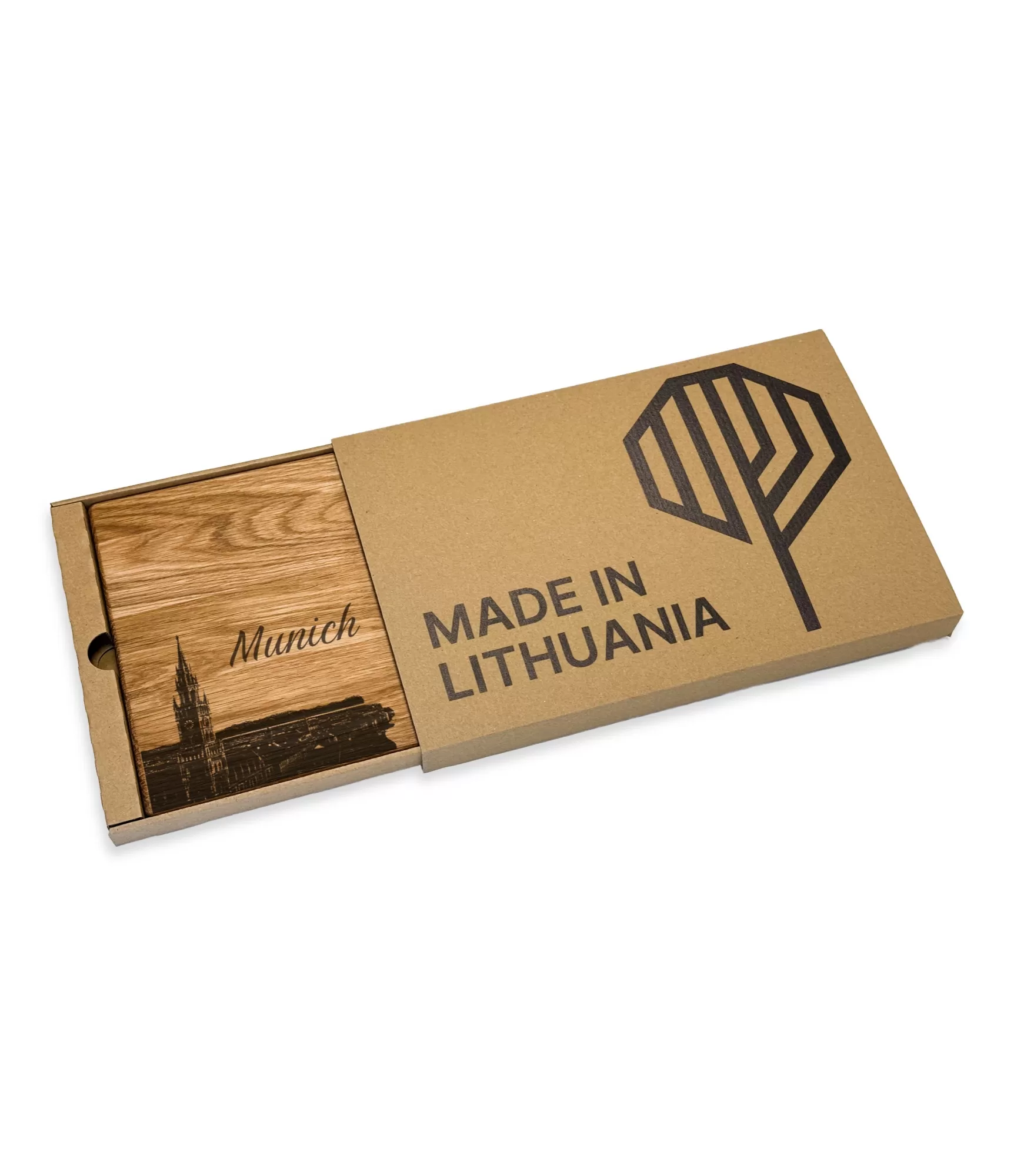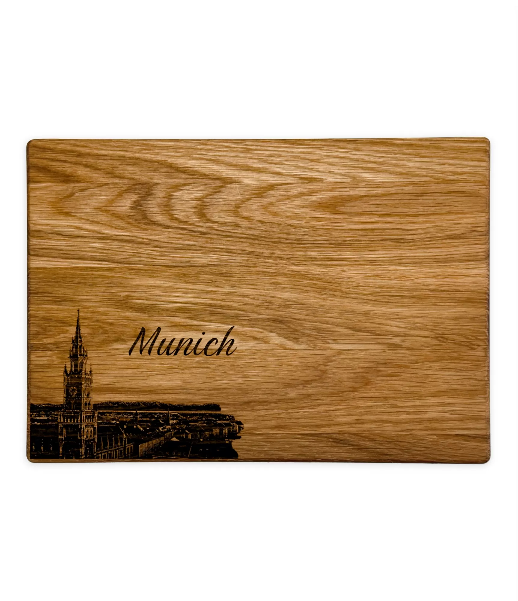Išskirtinė pjaustymo lentelė "Europos miestai Munich CB-2634" yra meniškas suvenyras, kuriame įamžintas Miuncheno siluetas didingų Alpių kalnų fone. Šis graviruotas vaizdas suteikia gaminiui gylio bei erdvės pojūtį, todėl lentelė tampa ne tik praktišku įrankiu, bet ir įspūdinga virtuvės puošmena. Tai idealus pasirinkimas norint suteikti stalui ypatingos nuotaikos bei estetiškai patiekti sultingus kepsnius ar kitus grilio patiekalus jūsų svečiams.