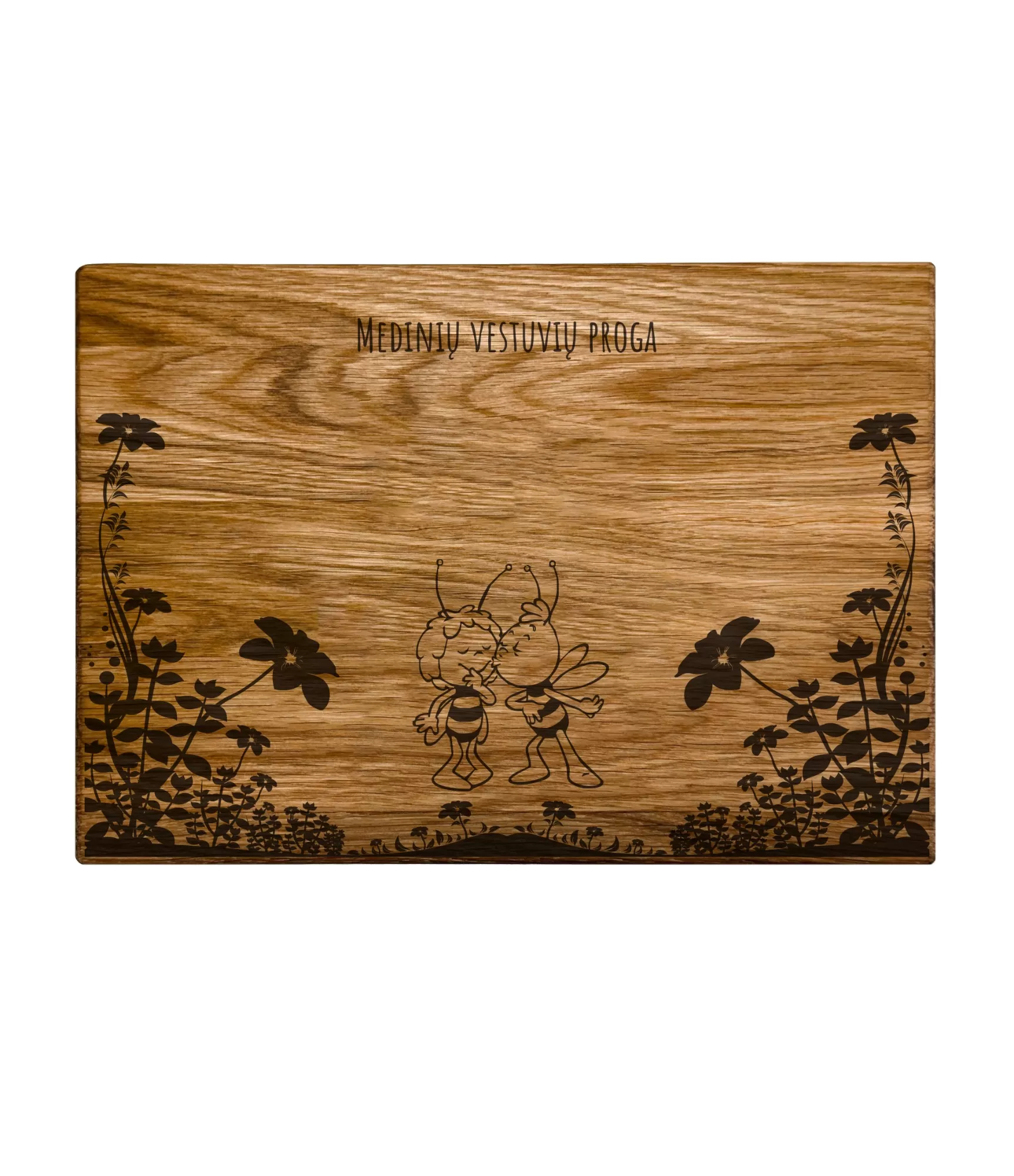 Graviruota pjaustymo lentelė „Medinių vestuvių proga CB-26P7-LT“ yra nuoširdi dovana, skirta paminėti 5-ąsias vestuvių metines. Linksmas bičių poros motyvas ir pievos gėlių detalės sukuria jaukią nuotaiką, kuri puikiai tinka šeimos šventei. Tai ne tik praktiškas gaminys virtuvėje, bet ir mielas prisiminimas, padedantis suteikti stalui išskirtinės nuotaikos tiek kasdien, tiek per šventes.