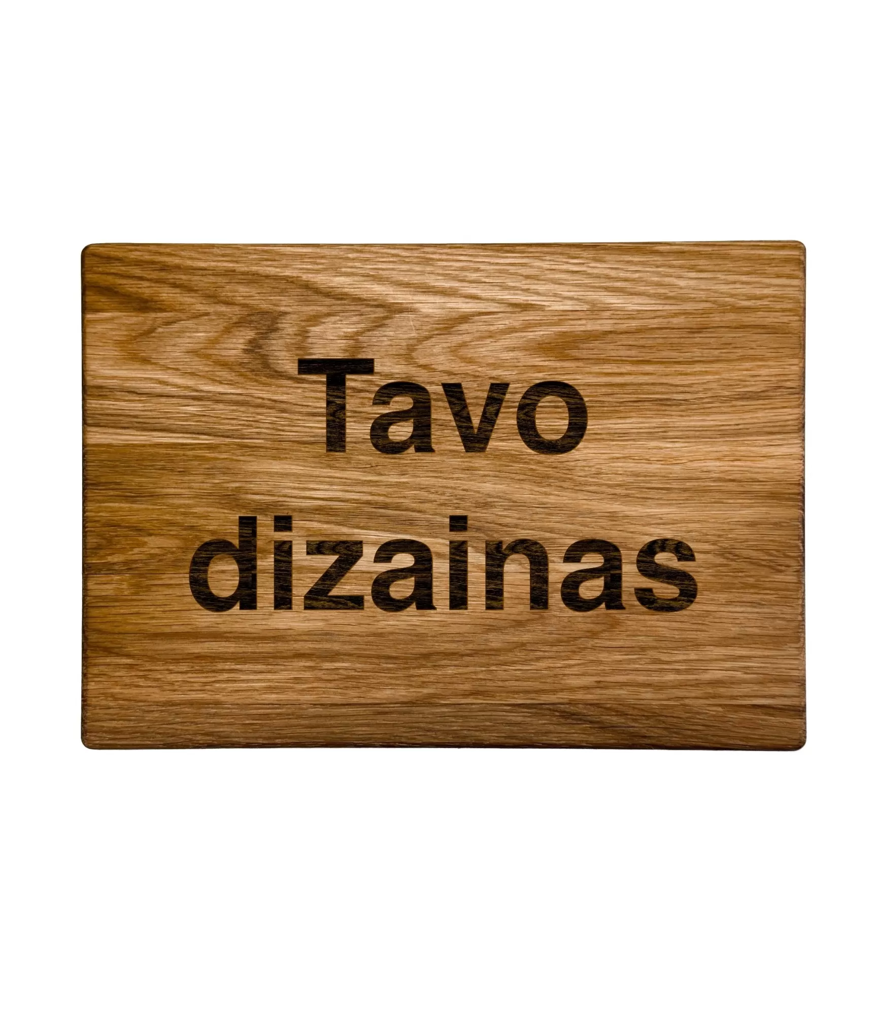 Ąžuolinė pjaustymo lentelė su Jūsų dizainu - tai galimybė susikurti viską pagal save ir pasijausti tikru šios srities dizaineriu. Patogus lentelės formatas suteikia visas galimybes eksperimentuoti, o jei trūksta atitinkamų žinių ar nesate tikri dėl galutinio rezultato - visada galite kreiptis tiesiogiai į mūsų specialistu. Jei ketinate susukurti savo dizainą pirmą kartą, atkreipkite dėmesį, kad graviravimas atliekamas pramoniniu lazeriu, linijos turi būti aiškiai atskirtos viena nuo kitos, o kontūrai - kontrastingi.