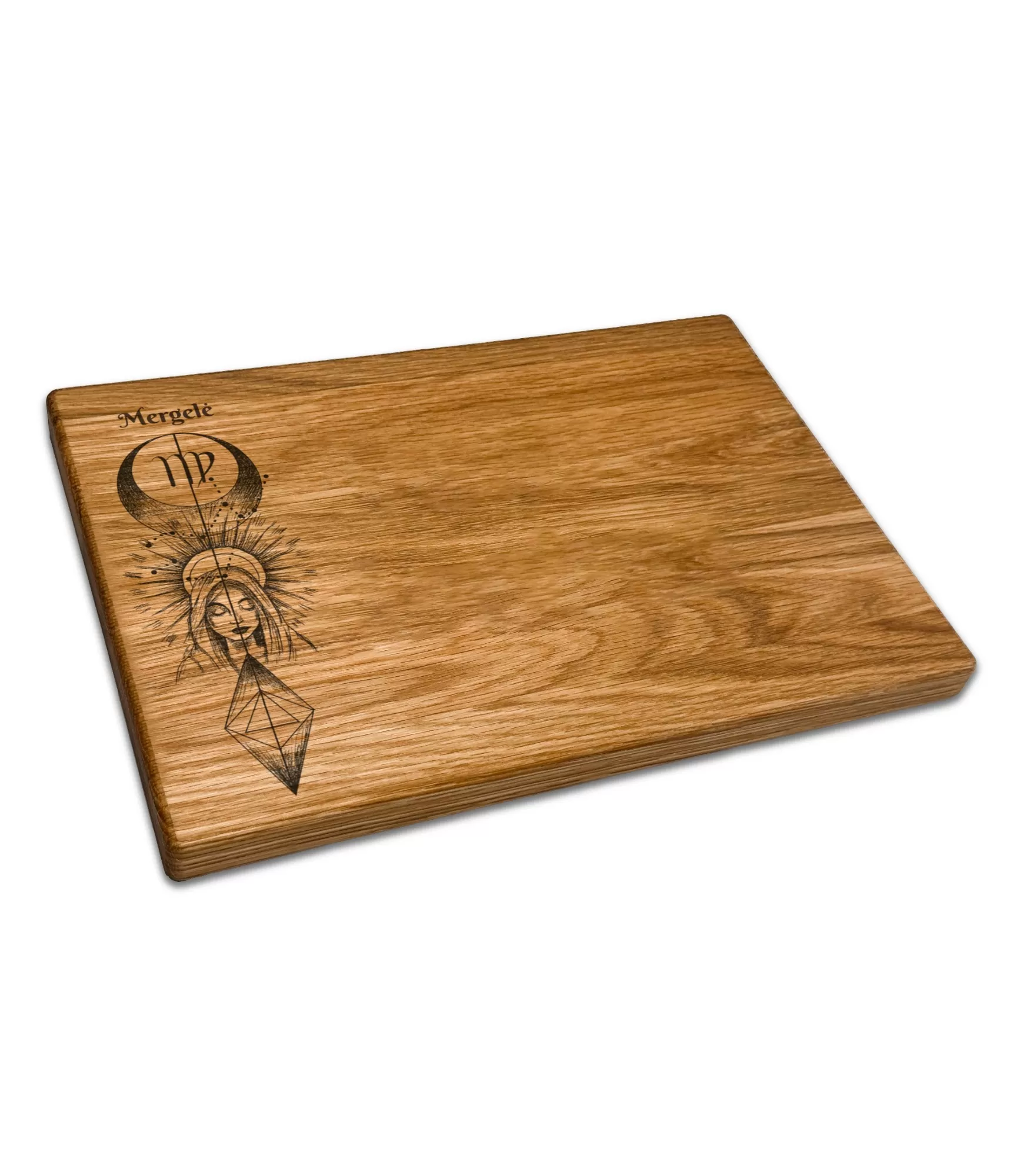 Šis ilgaamžis ąžuolo gaminys yra puiki dovanos idėja, sujungianti funkcionalumą su asmeniniu dėmesiu. Ąžuolas pasižymi ypatingu patvarumu, todėl lentelė tarnaus ilgai, o kokybiška alyva apsaugo paviršių nuo drėgmės bei išryškina medienos tekstūrą. Lentelė supakuota į stilingą dovanų dėžutę, todėl tai jau paruošta dovana gimtadieniui, įkurtuvių proga ar solidi verslo dovana. Ypatingo išskirtinumo suteikia galimybė šalia Mergelės dizaino išgraviruoti jūsų pasirinktą užrašą. Tai gali būti vardas, svarbi data ar tokios frazės kaip: "Marijai gimtadienio proga", "Tobula virtuvė", "Skanu ir sveika" arba "Mergelės harmonija". Tokia asmeninė dovana džiugins kiekvieną kokybės mylėtoją.