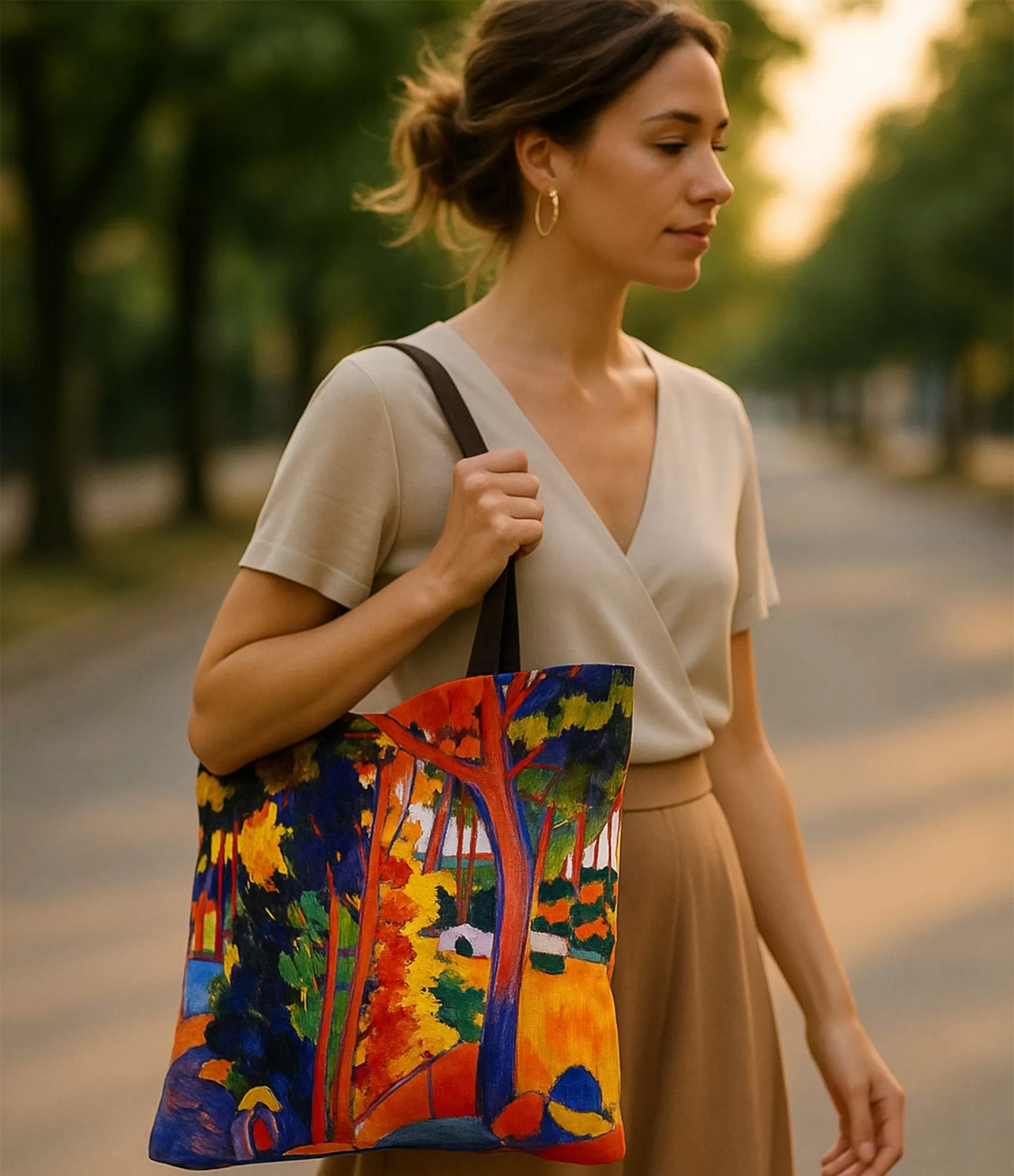 Tai krepšys, kuris sujungia praktiškumą su estetika. Neapsiribokime vadinti ją tik rankine – tai meno galerija, kurią galima neštis ant peties. Ir kiekvienas, kuris pažvelgs, išvys tą patį, ką matė André Derain: šviesos šokį tarp medžių, vėjo dvelksmą tarp spalvų, pasaulį, kuris gyvas net tada, kai viskas aplink sustingsta.