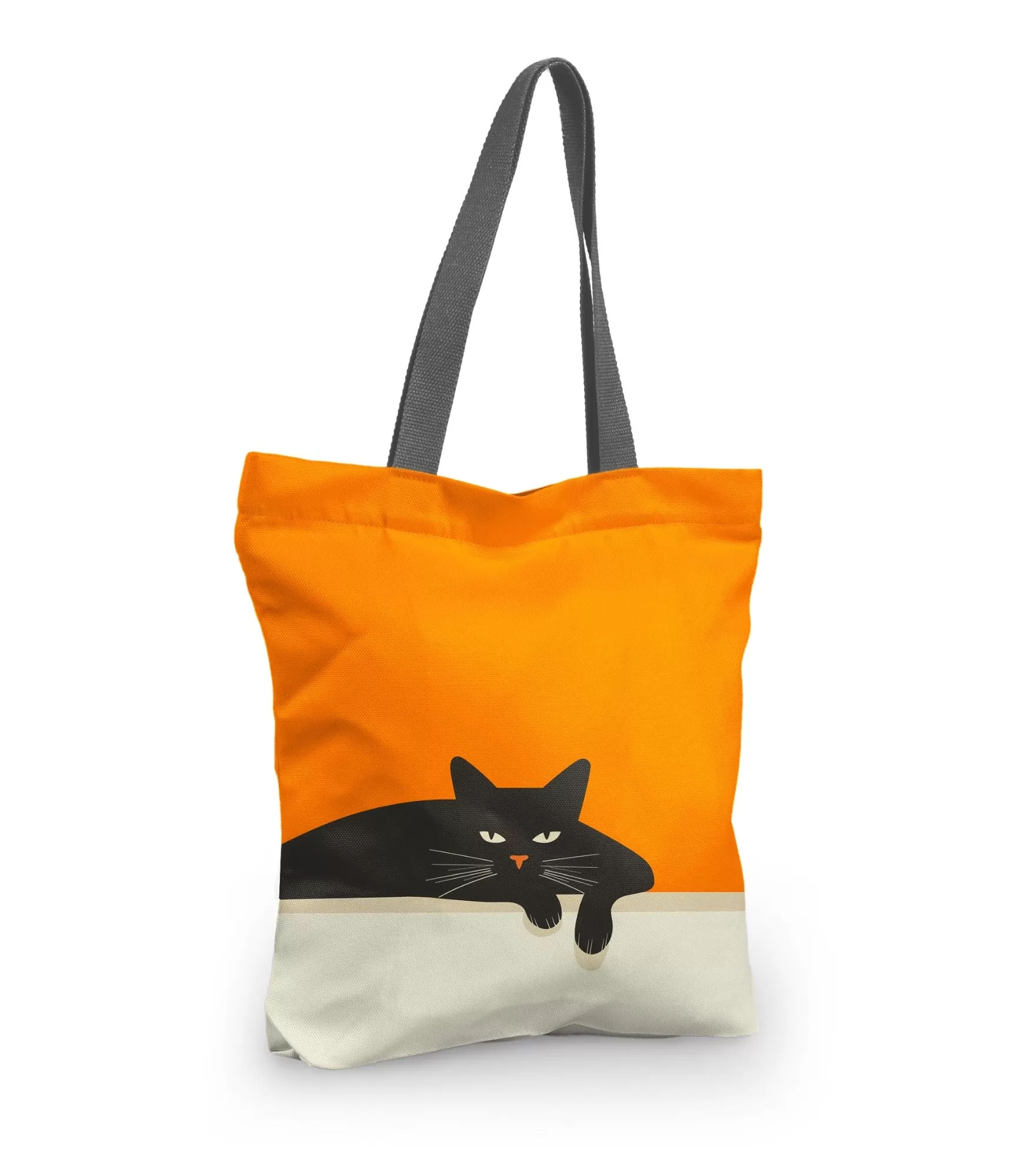 Ši rankinė – tai spalvinės ramybės ir šelmiškumo manifestas, pasakojimas apie akimirką, kai viskas sustoja. Oranžinis fonas spinduliuoja šilumą ir šviesą, o juodas katinas – tikras tinginio elegancijos simbolis – įsikūręs ant smėlinio krašto lyg ant smulkaus smėlio paklotės. Visa scena primena siestą tarp dviejų debesų, kai niekur nereikia skubėti ir galima tiesiog būti. Spalvų kontrastas stiprus, bet harmoningas, suteikiantis dizainui išskirtinę dailininko prisilietimo estetiką. Apačioje – švelni tekstūra, kuri lyg atspindi paties audinio švarą, ir kurioje išskirtinai įkomponuotas mūsų prekės ženklo ženklas. Ši rankinė pagaminta iš tvirtos, bet lengvos medžiagos, kuri tinkama tiek kasdieniams pasivaikščiojimams, tiek netikėtoms savaitgalio išvykoms.