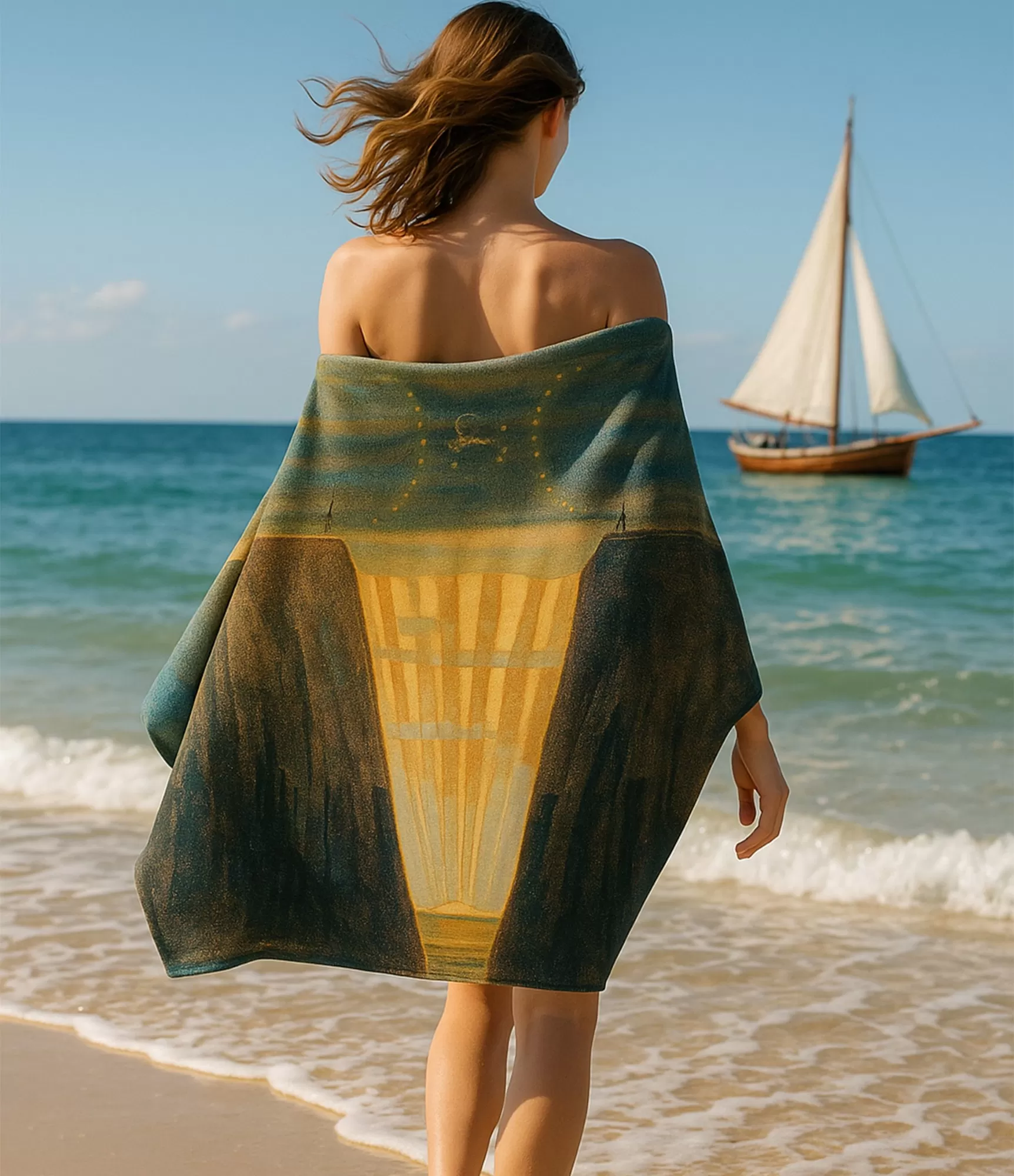 Šis rankšluostis – tai ne tik funkcionalus daiktas, bet ir vizualinė kelionė į Dvynių zodiako pasaulį, perteiktą per M. K. Čiurlionio kūrybos prizmę. Dinamiška, lengvai žaižaruojanti kompozicija atspindi pačius Dvynius – bendraujančius, intelektualius, visada judančius tarp idėjų ir pasaulių. Čiurlioniškas simbolizmas čia alsuoja oru, šviesa ir mintimi – atviromis erdvėmis, metafiziniais langais, besiliejančiais siluetais. Tai kvietimas mąstyti, kvėpuoti giliau, pastebėti tai, kas dažnai praslysta pro akis. Šio rankšluosčio su zodiaku vizualas kalba švelnia, bet gyva kalba – tarsi Dvynių pašnekesys. Jis idealiai tinka tiems, kurie vertina ne tik estetiką, bet ir prasmingus ženklus. O dar daugiau – kiekvienas toks rankšluostis gali būti personalizuojamas, įtraukiant vardą, gimimo datą ar trumpą frazę. Tai suteikia daiktui dar daugiau artumo ir paverčia jį tikra dovana – individualia, gyva, tik tam vienam žmogui skirta. Šis rankšluostis džiugins ne tik akis, bet ir prisilietimą – jo viena pusė pagaminta iš 100 % medvilnės, o kita – iš aukštos kokybės poliesterio, leidžiančio perteikti visas spalvines ir simbolines Čiurlionio potėpių niuansų. Tai nėra tik spauda – tai meno atspindys, kurį galima naudoti kasdien, bet jausti kaip šventę.