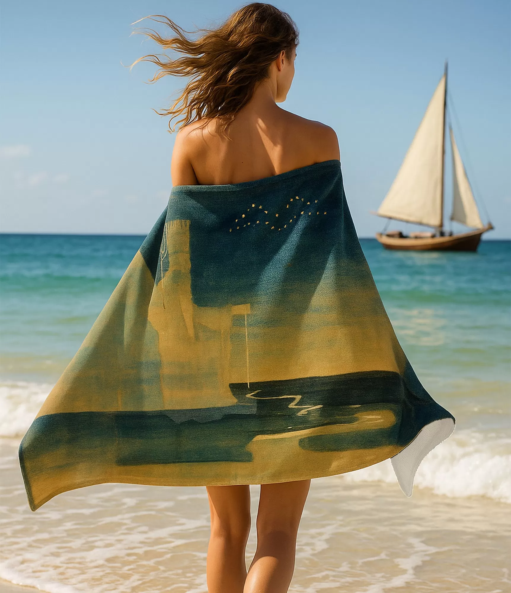 Vandenis – tai ženklas, kuriame gyvena ateitis. Jis eina pirmyn net tada, kai visi stovi vietoje. Jo mintys ne visada telpa į dabartį, jo idėjos dažnai gimsta tyliai, bet su laiku keičia pasaulius. Ir būtent tokią energiją spinduliuoja šis rankšluostis, įkvėptas M. K. Čiurlionio simbolizmo. Čia – laisvė mąstyti kitaip, kurti savaip, matyti giliau. Spalvos šaltos, bet ne svetimos. Kompozicija ne simetriška, bet tiksli. Čiurlioniškas peizažas primena nežemišką viziją, kur vanduo teka iš minčių, o žvaigždės – iš idėjų. Tai ne paprastas rankšluostis su zodiaku, o tylus priminimas tiems, kurie gimę būti nepriklausomi. Jis tinka tiems, kurie renkasi savo kelią net tada, kai visi kiti eina kitur. Tai gali būti netikėta ir prasminga dovana – žmogui, kuris išsiskiria, bet ne dėl to, kad stengiasi išsiskirti. Tiesiog toks yra. Vandenis nedėvi kaukių, jis kalba atvirai. Ir šis rankšluostis – kaip vizualinis to atspindys. Jei norisi dar daugiau asmeniškumo – tai gali tapti vardiniu rankšluosčiu. Užrašas, vardas ar prasmingas žodis čia susilieja su dizainu, nes ši dovana neturi būti bendra – ji gali būti skirta tik vienam žmogui. Tokią, kokią nešiojiesi ne tik ant odos, bet ir savyje.