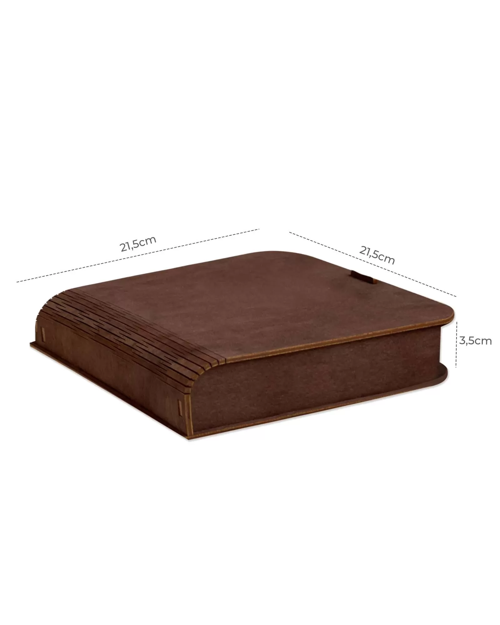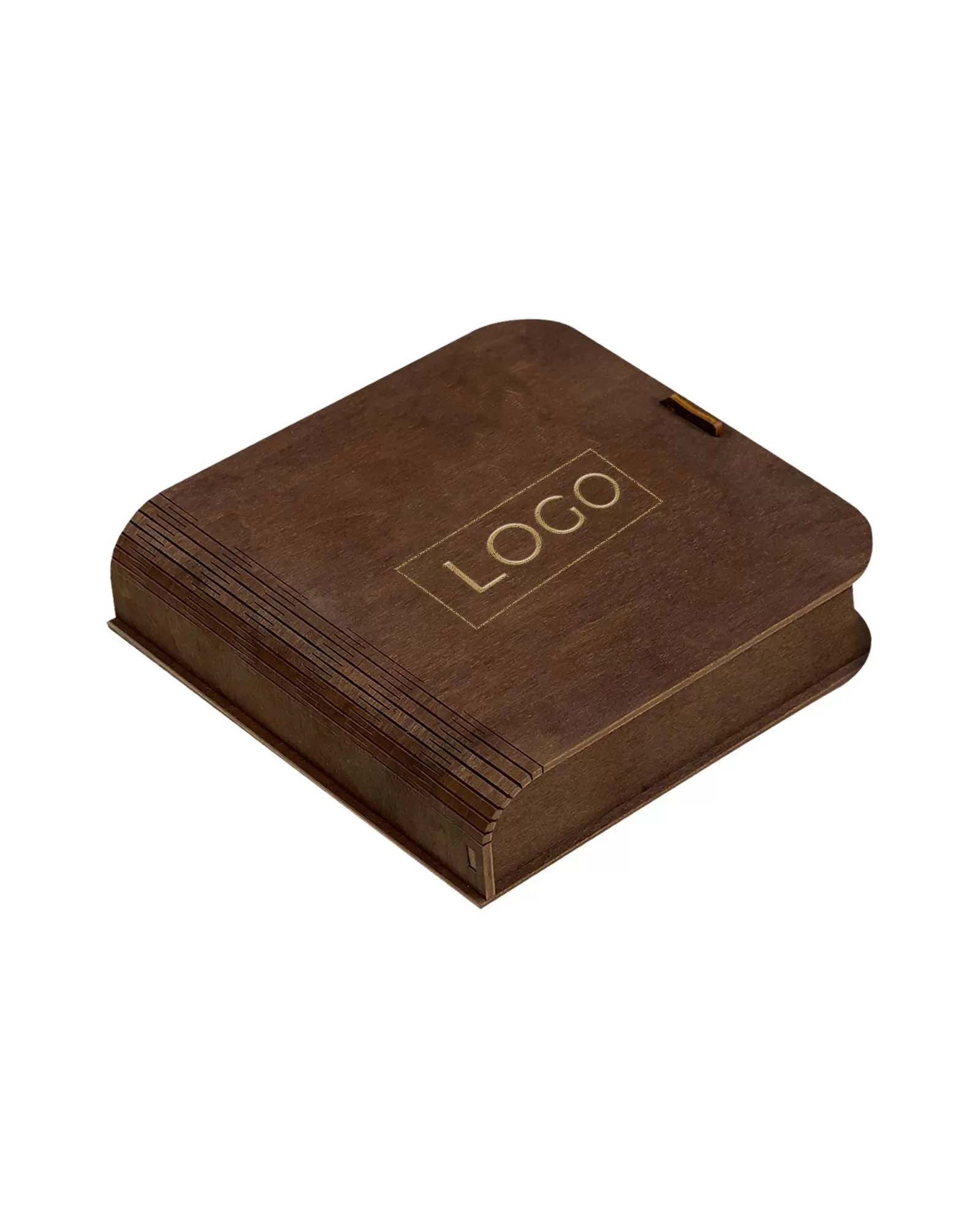 Medinės dėžutės išmatavimai: 11,5 x 11,5 x 2,5 cm.