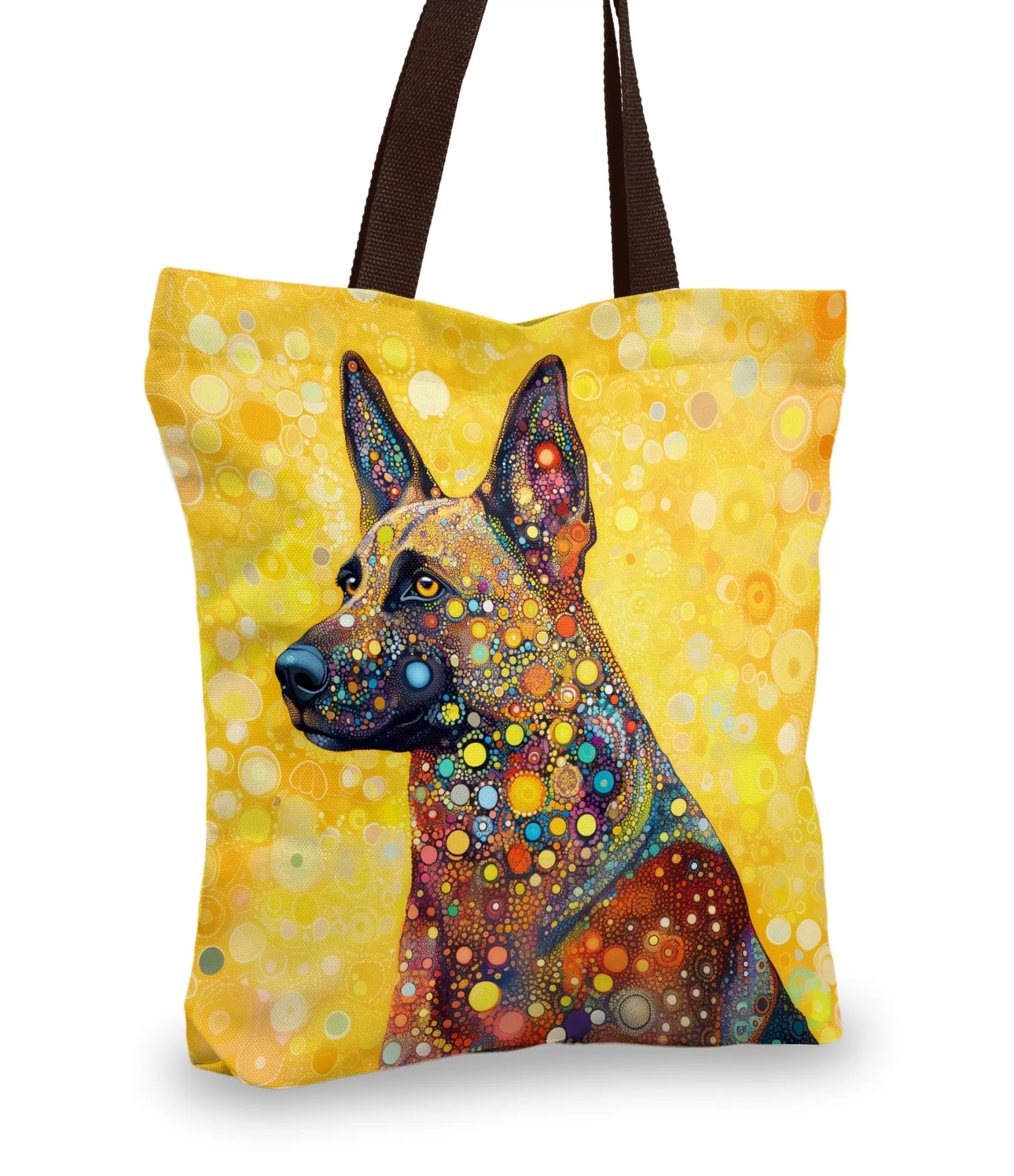 Šie pirkinių krepšiai su šuns nuotrauka pagaminti Lietuvoje, užtikrinant aukštą kokybę ir dėmesį detalėms.