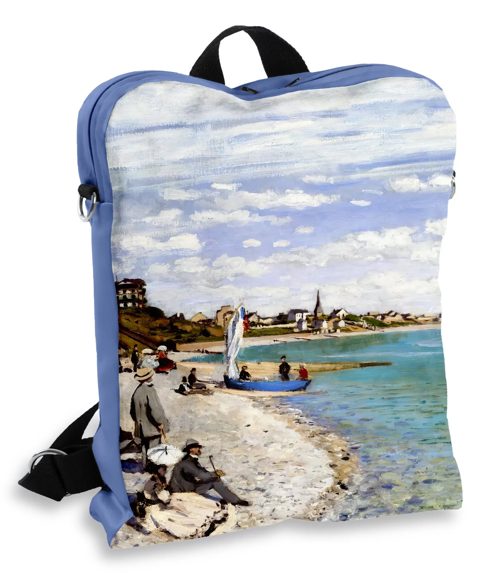 Claude Monet paveikslas „The Regatta at Sainte-Adresse“ – tai ne tik jachtų regata, bet ir saulės kupinas gyvenimo momentas. Pagal šį kūrinį sukurtas kuprinės dizainas kviečia į švelnų burių šokį horizonte, į džiaugsmą, kuris kyla iš stebėjimo ir kvėpavimo vasara. Tai kuprinė, kuri atspindi lengvumo, spalvos ir judesio pilną dieną.