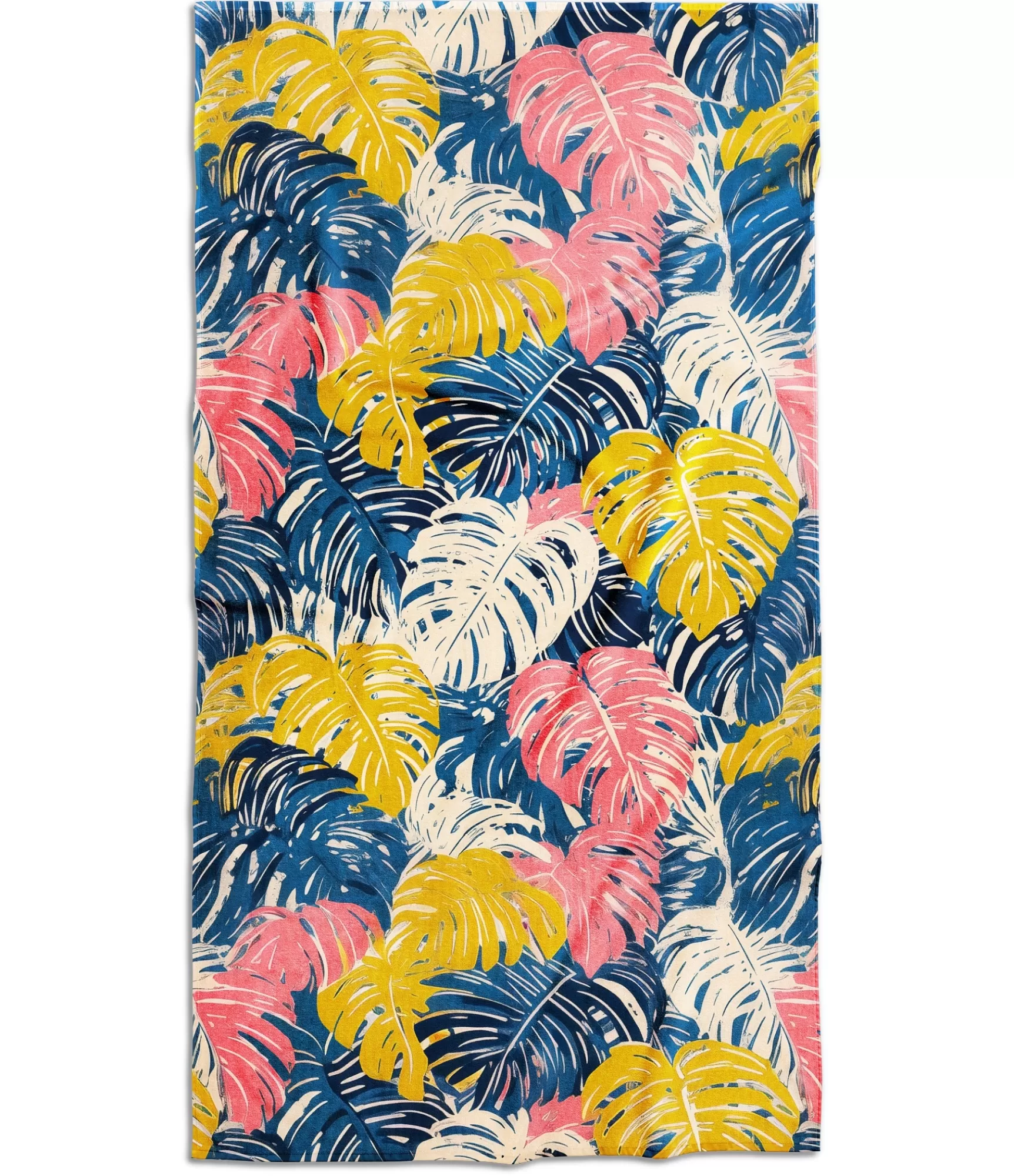 Tropinis vonios rankšluostis su spalvingais lapais.