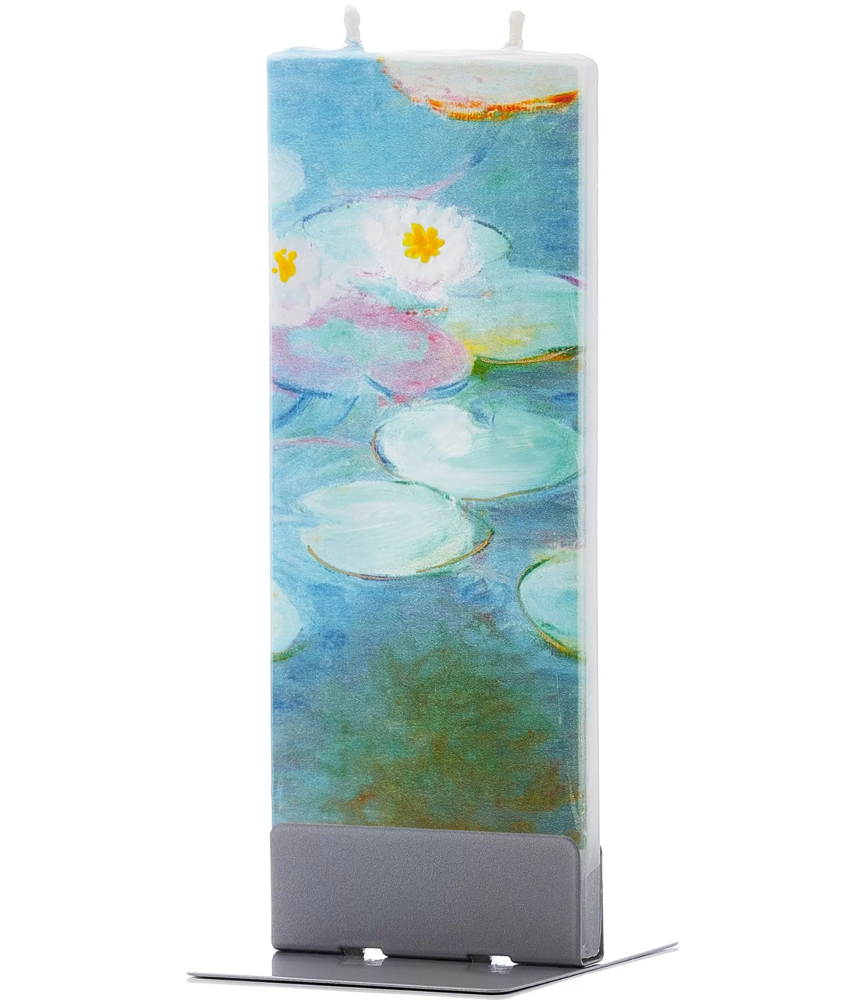 Stilinga žvakė "Water Lilies Monet 20K049" su geltonais žiedų akcentais leidžia namuose pajusti Claude'o Monet darbų gyvybingumą. Šviesus vandens lelijų fragmentas, kuriame dominuoja saulėti tonai, subtiliai perkeltas ant grakštaus paviršiaus, bet kurią erdvę praturtina istoriniu sodrumu bei estetiniu grynumu. Ši džiaugsminga spalvų gama ir rami kūrinio kompozicija čia įgauna naują formą, paversdama klasikinį šedevrą stilingu interjero akcentu.